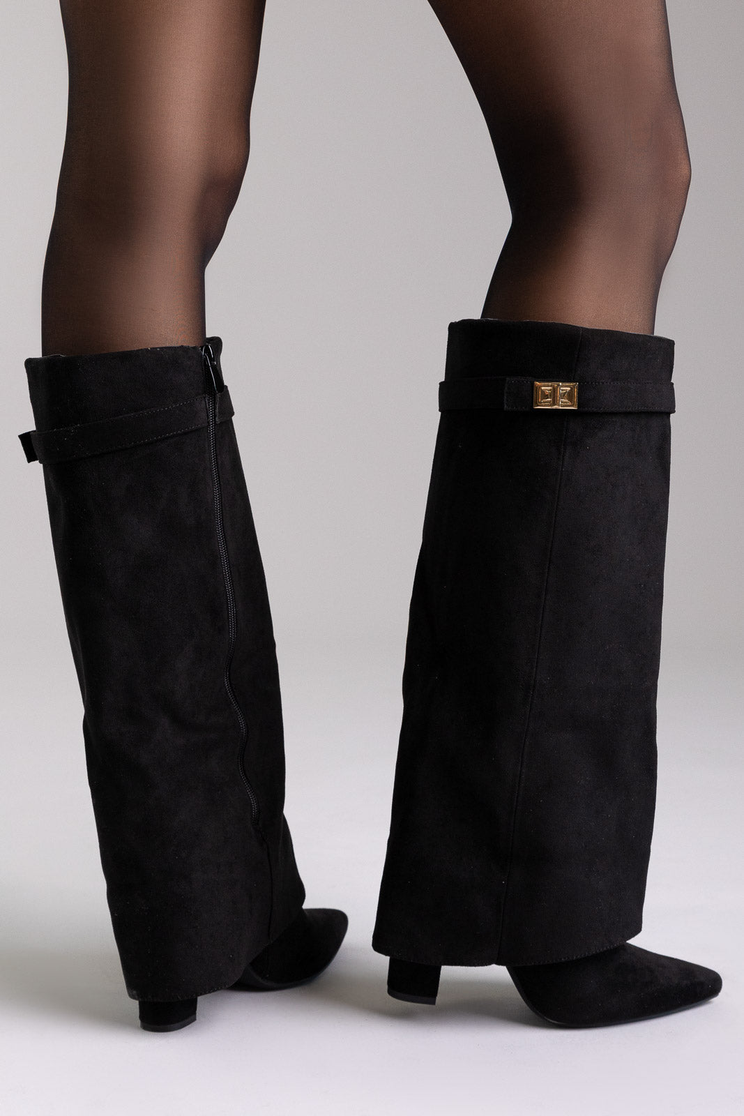 Μπότες με Γκέτα Ψηλό Τακούνι Τετράγωνο - Μαύρο Σουέτ