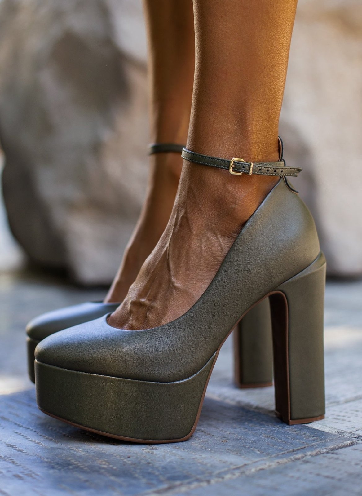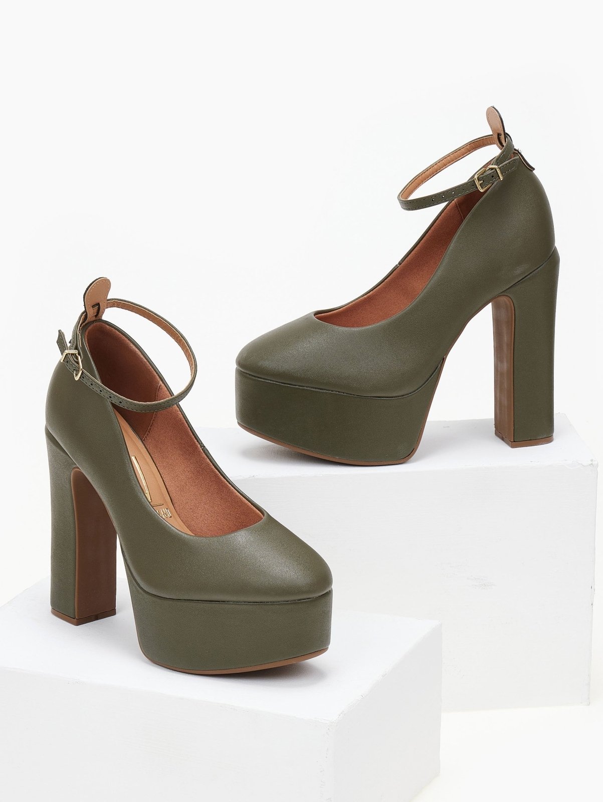Γόβες Vizzano. ψηλή φιάπα και χοντρό τακούνι. Δένουν με μπαρέτα στο ύψος του αστραγάλου. Στρογγυλή γραμμή. έχουν μαλακό ανατομικό πάτο. Σόλα με λάστιχο.
