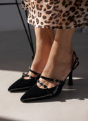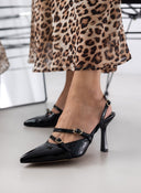 Γόβες λουστρίνι μυτερές με διπλό λουράκι TFP - Μαύρο