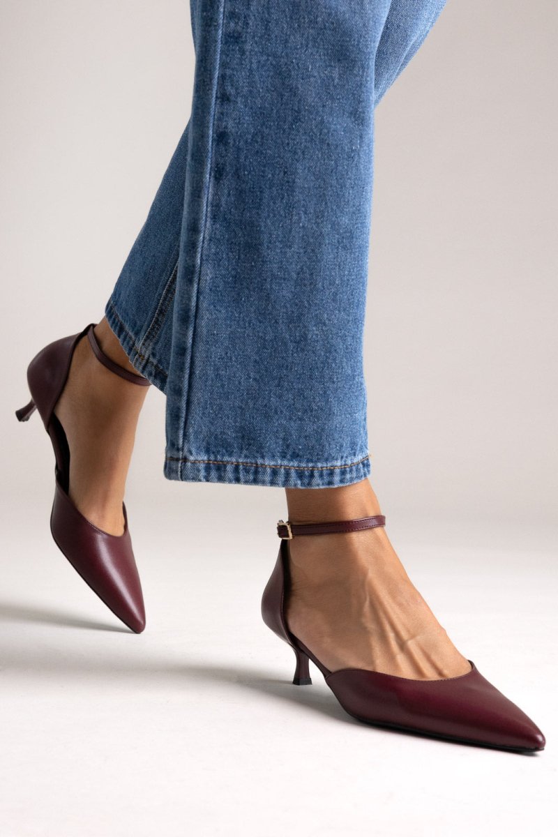 Γόβες TFP με cutout σχέδιο και μυτερή μύτη σε kitten heel. Εφαρμογή με λουράκι στον αστράγαλο, μαλακός πάτος, κομψό προφίλ—ευέλικτες γόβες σχεδιασμένες για κάθε περίσταση.