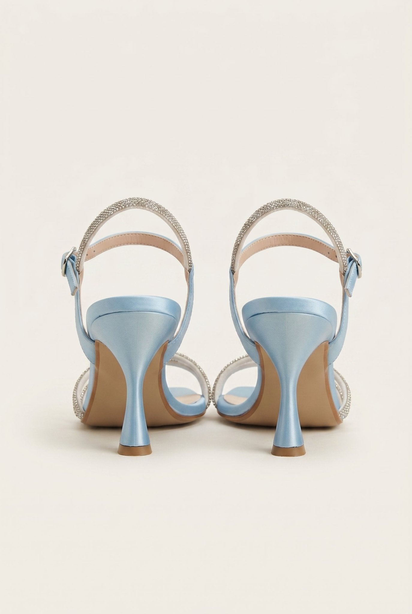 Πέδιλα με τακούνι και λουράκια με στρας - Απαλό Μπλε σατέν