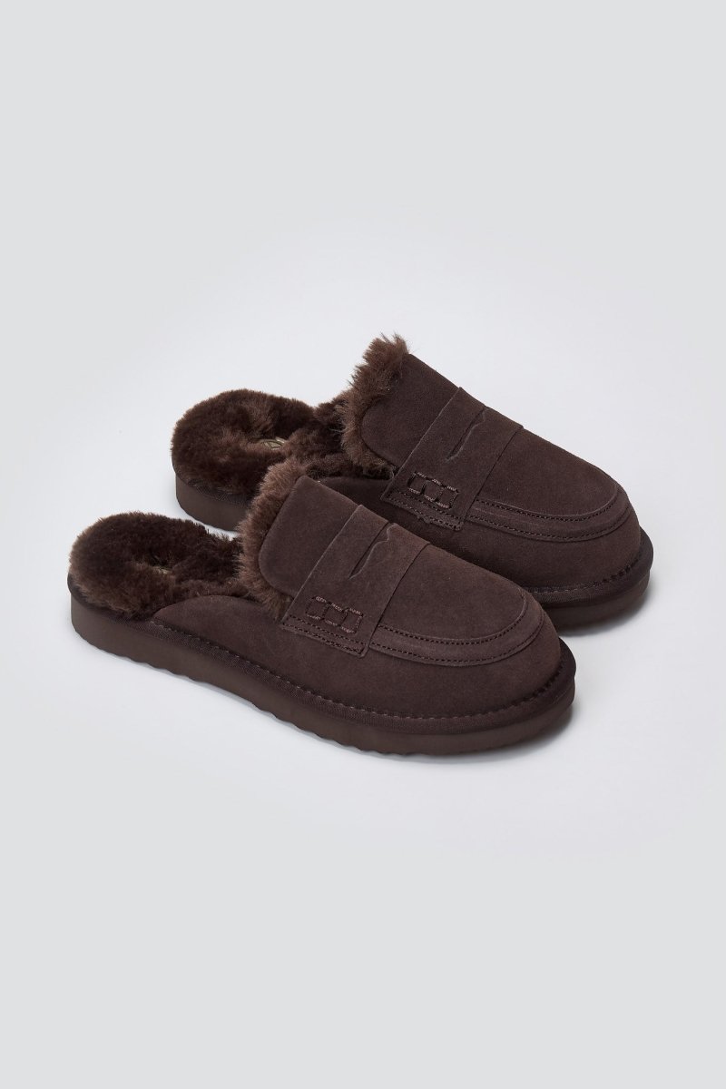 Χειμερινές παντόφλες με γούνα KELARA - Καφέ Σουέτ