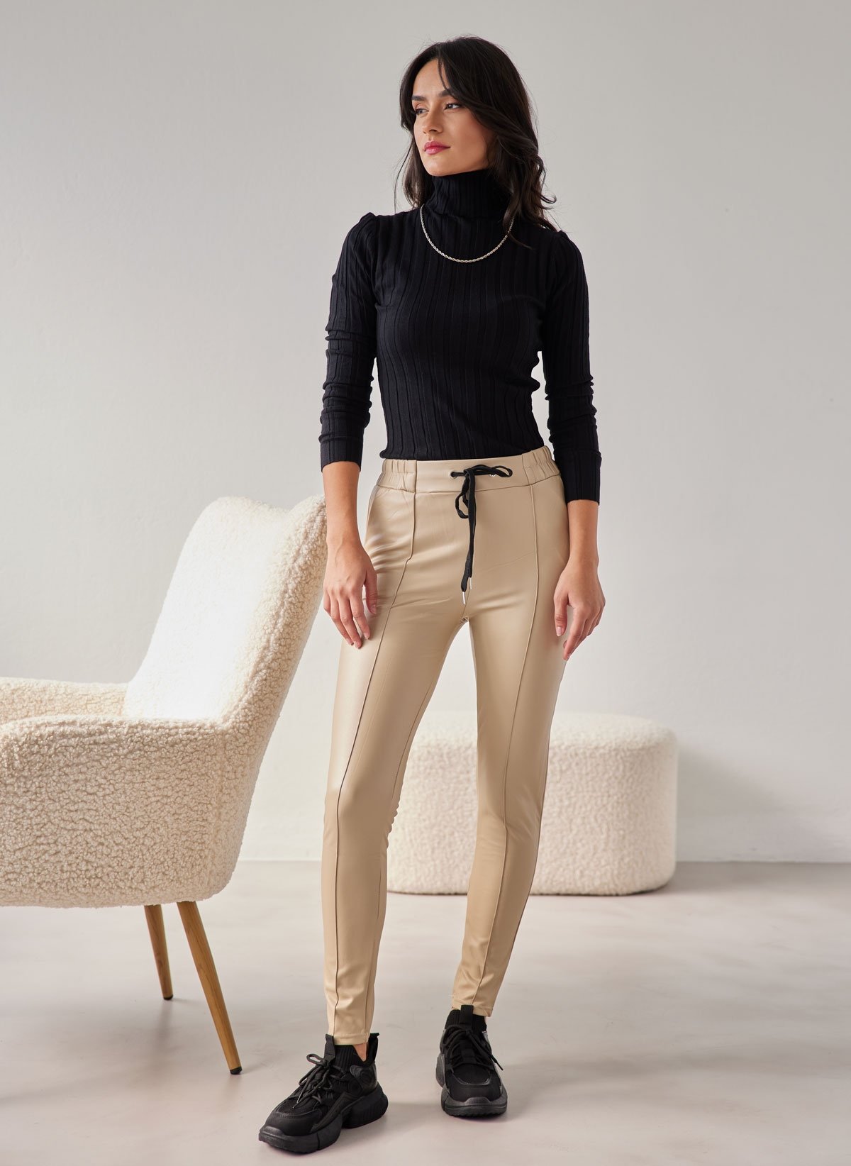Κολάν δερματίνης με κάθετη ραφή - Μπεζ