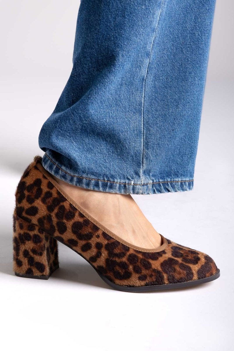 Κομψές γόβες από ponyskin με λεοπάρ σχέδιο, στρογγυλή μύτη και τετράγωνο τακούνι. Ένα τολμηρό αλλά ταυτόχρονα εκλεπτυσμένο στυλ που προσφέρει άνεση και φινέτσα για τη σύγχρονη γυναίκα.