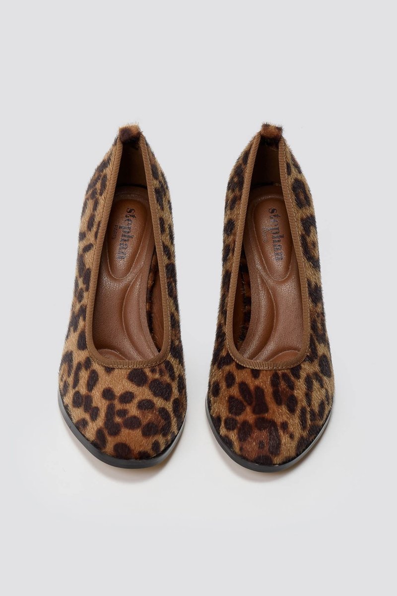 Κομψές γόβες από ponyskin με λεοπάρ σχέδιο, στρογγυλή μύτη και τετράγωνο τακούνι. Ένα τολμηρό αλλά ταυτόχρονα εκλεπτυσμένο στυλ που προσφέρει άνεση και φινέτσα για τη σύγχρονη γυναίκα.