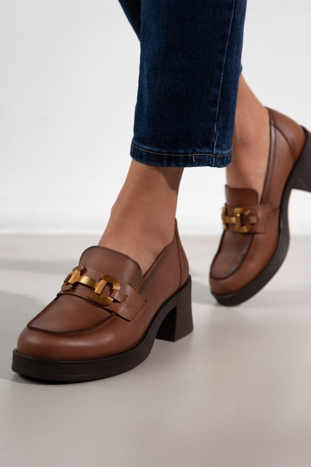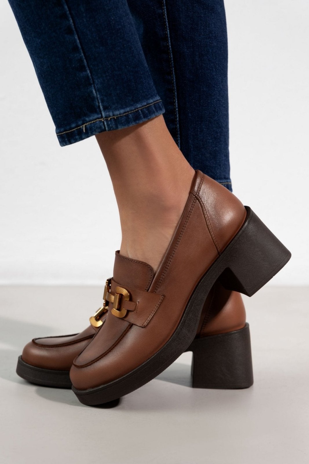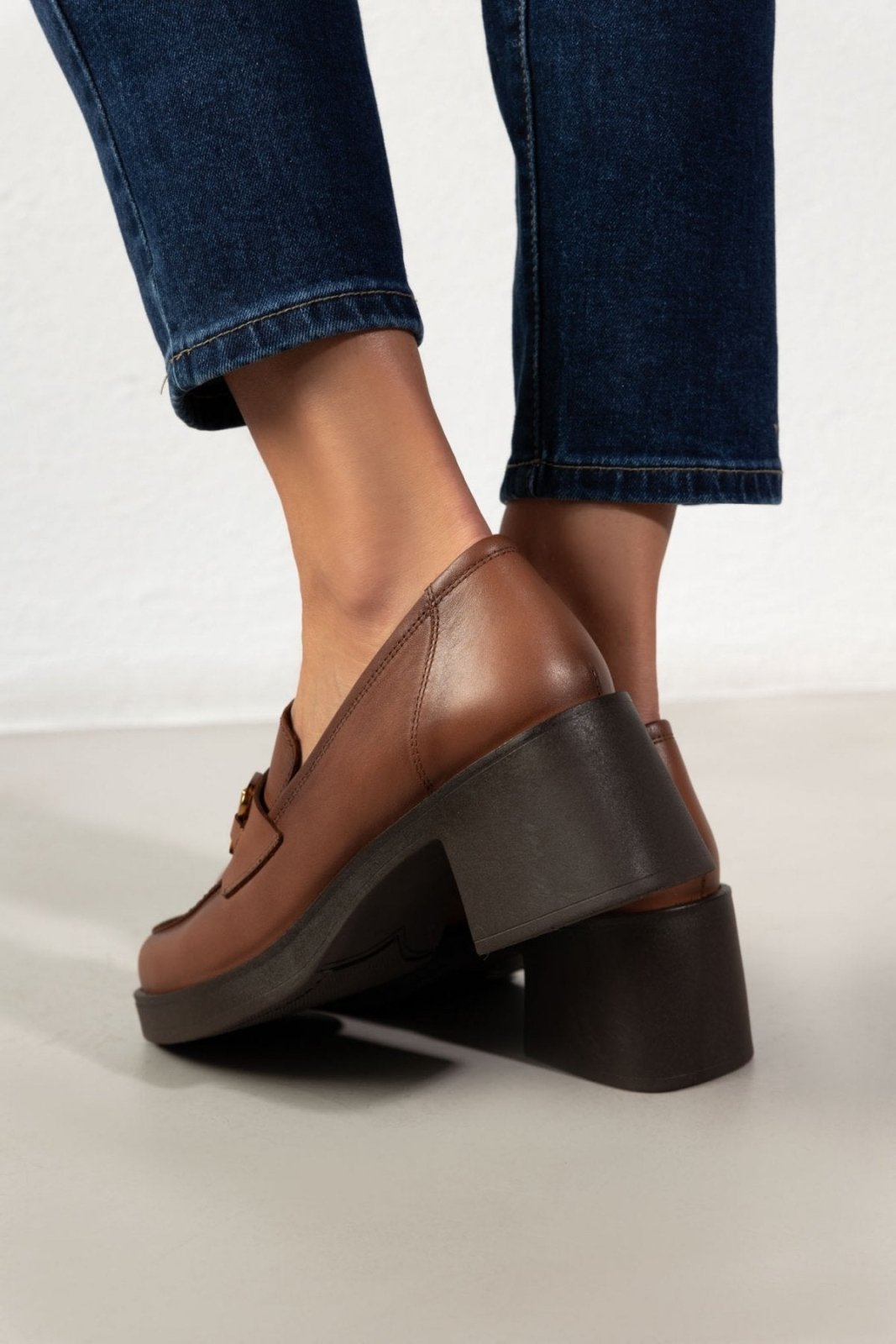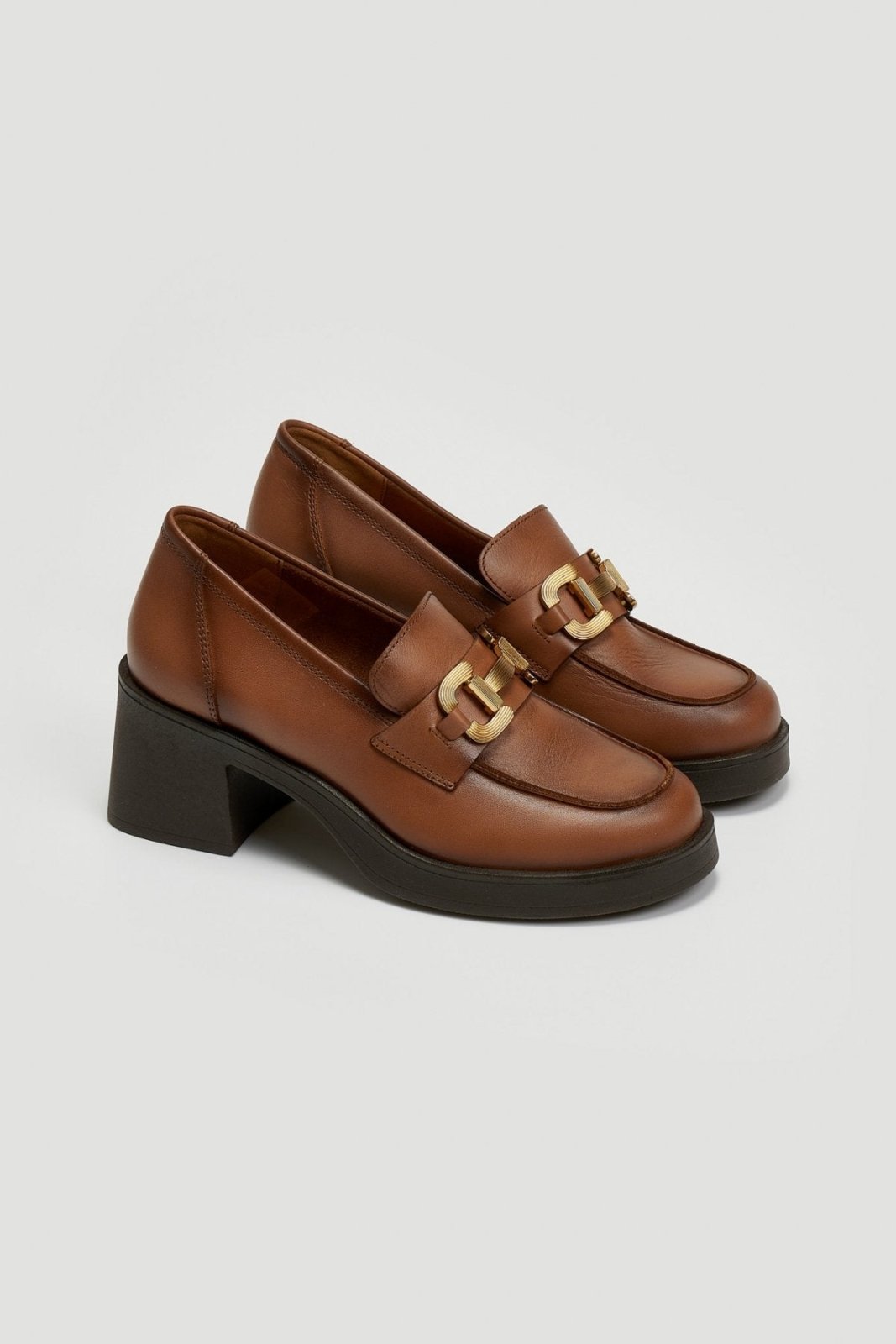 Loafers δερμάτινα με τακούνι Ragazza. Μεταλλικό διακοσμητικό στο ύψος του κουτεπιέ. Η Ελληνική εταιρεία Ragazza ειδικεύεται στα ανατομικά (comfort) παπούτσια τα οποία διαθέτουν την κορυφαία τεχνολογία Dryflex στο εσωτερικό τους, που προσφέρει απόλυτη διαπνοή, απορρόφηση κραδασμών και προστασία από οσμές. Είναι η καλύτερη επιλογή για ατελείωτες ώρες και άνεση.