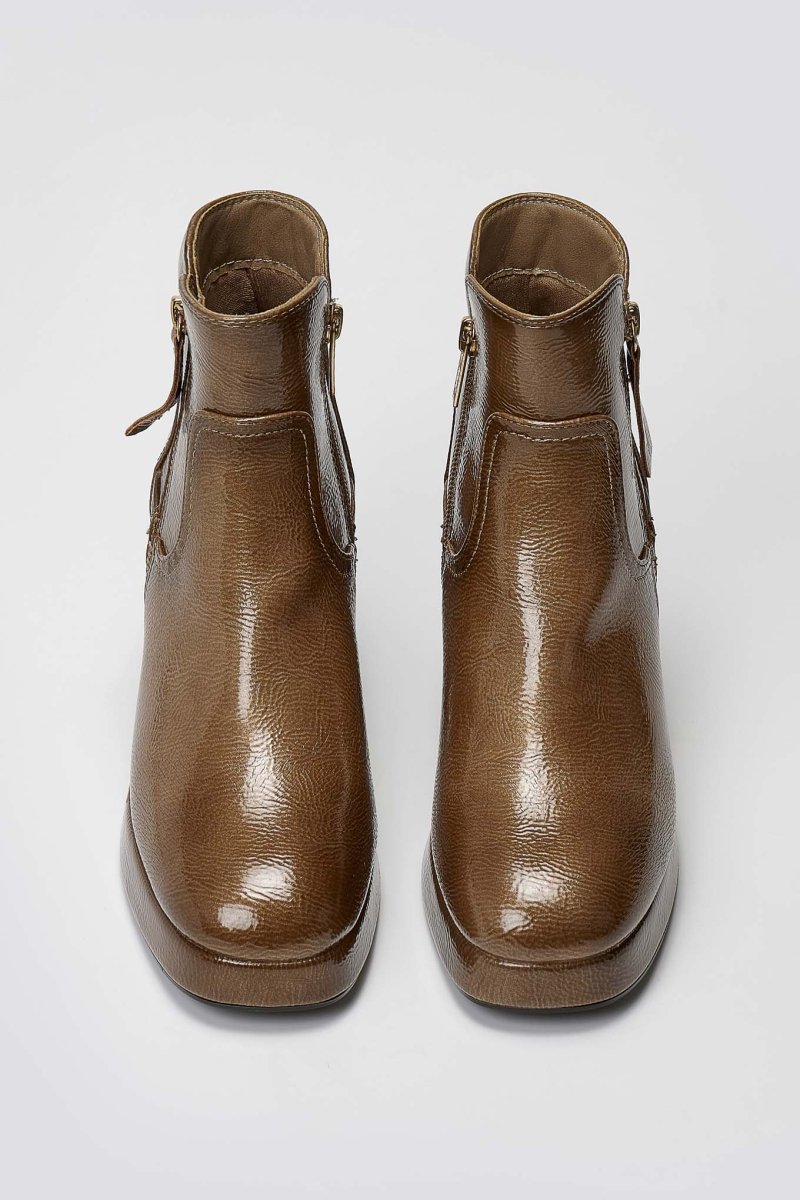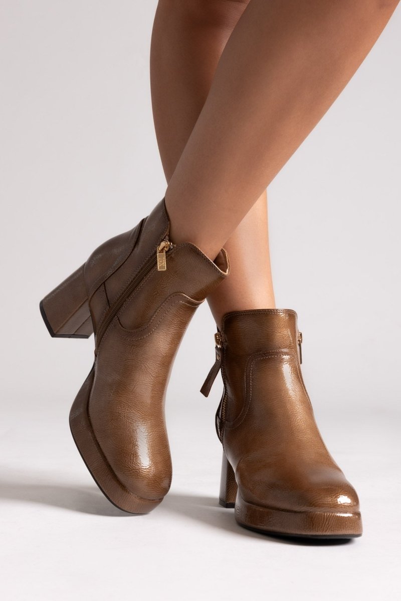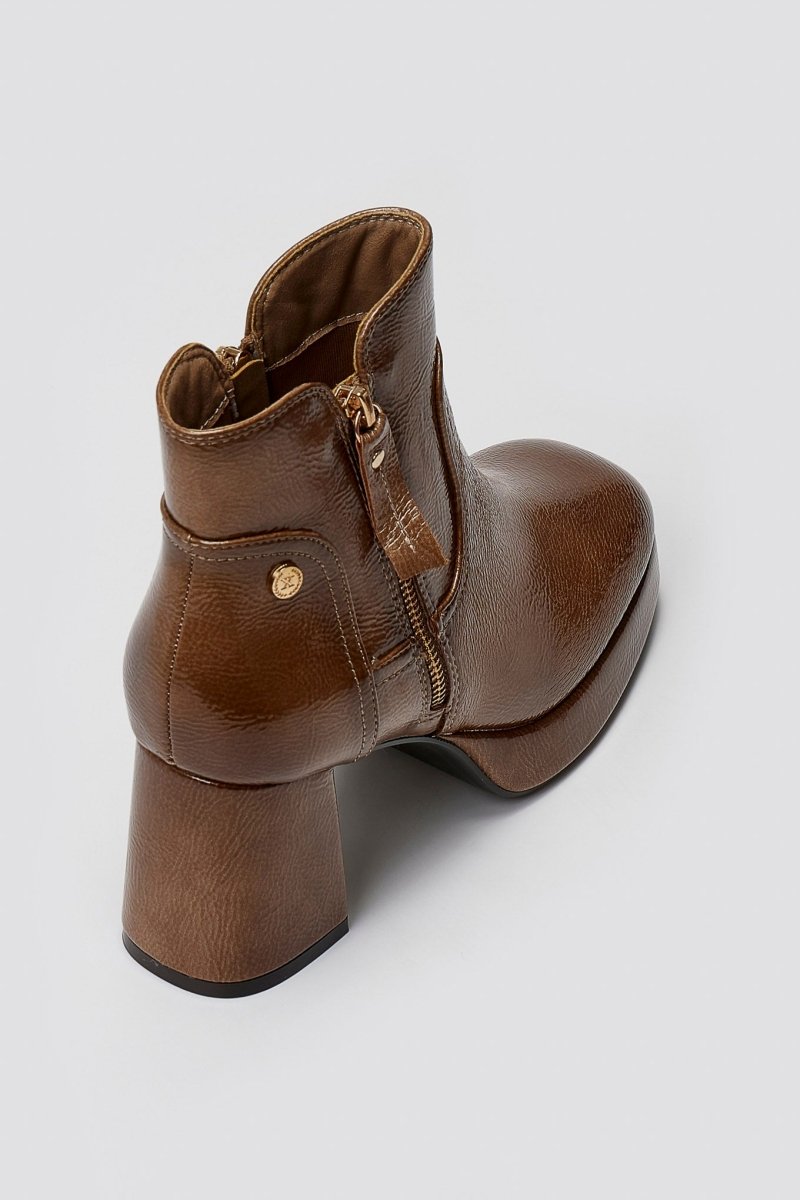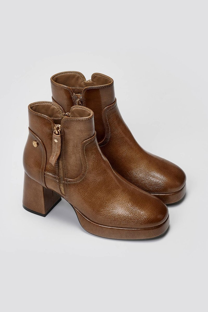<p>Γυναικεία μποτάκια Xti 144272 σε ταμπά λουστρίνι με block τακούνι, τετράγωνη μύτη και πλαϊνό φερμουάρ. Με ανατομικό suede πάτο memory foam για άνεση. Vegan PETA approved.</p>
