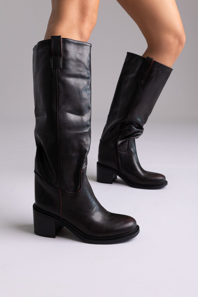 Στυλάτες μπότες με χαμηλό τετράγωνο τακούνι, στρογγυλή μύτη και πρακτικό πλαϊνό φερμουάρ. Ένα διαχρονικό σχέδιο που προσφέρει καθημερινή άνεση και αβίαστη κομψότητα.