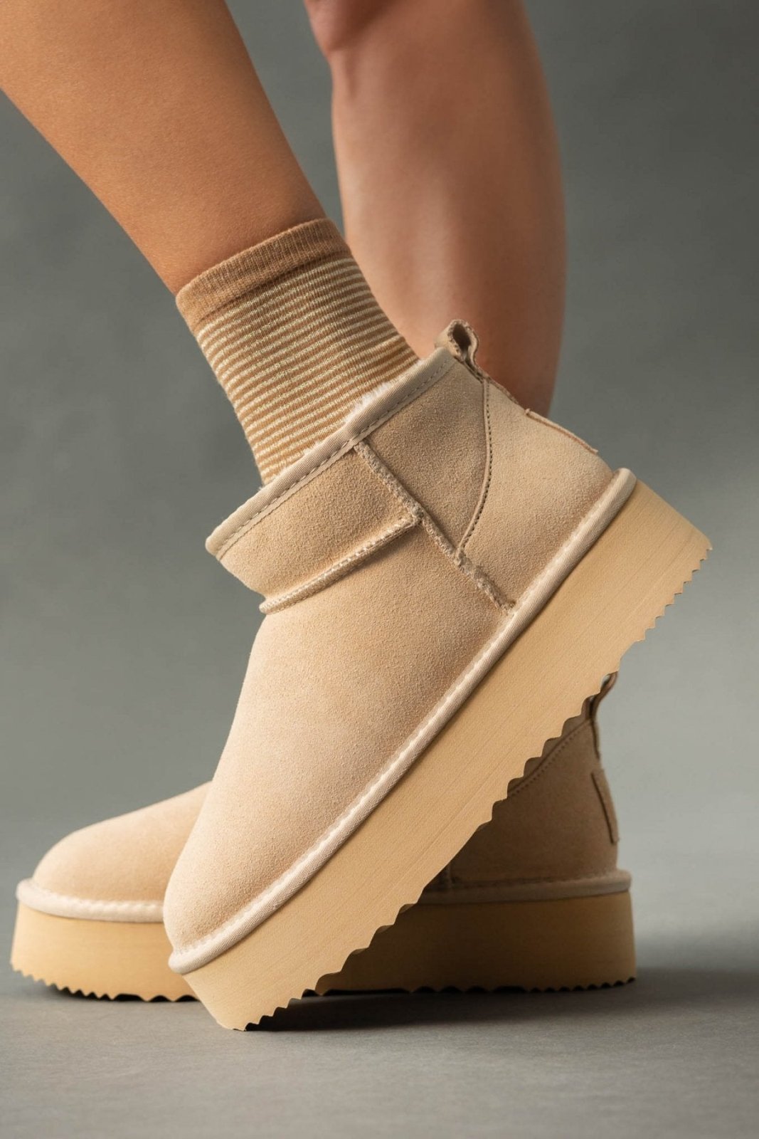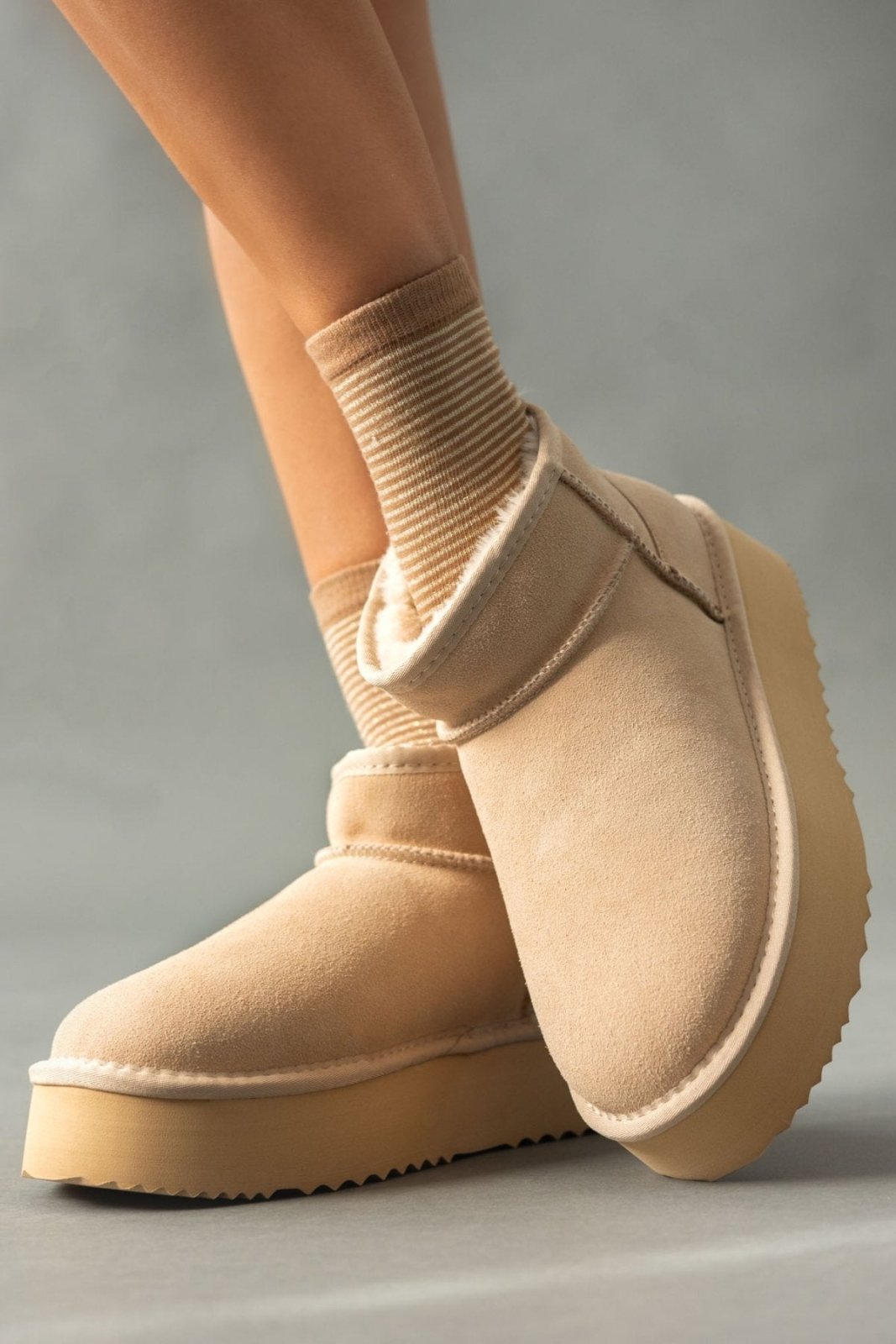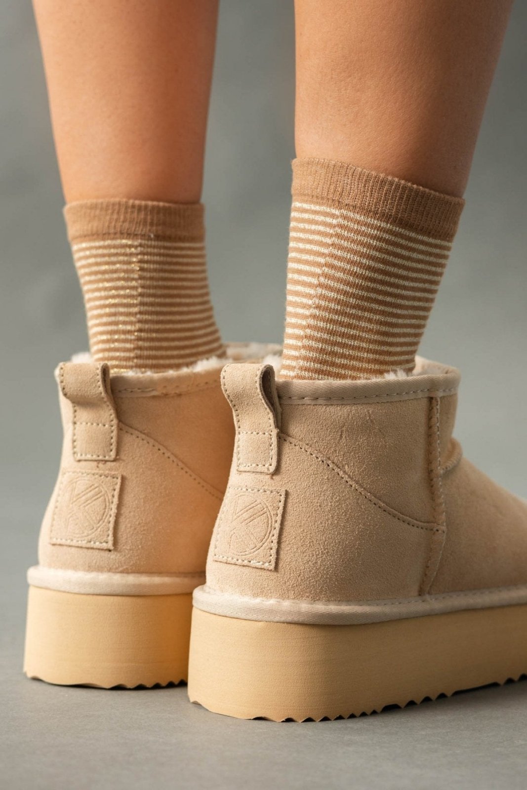 Μποτάκια αστραγάλου από γνήσιο δέρμα καστόρι KELARA. Επένδυση με συνθετική γούνα. Πλατφόρμα ελαφριά σόλα.