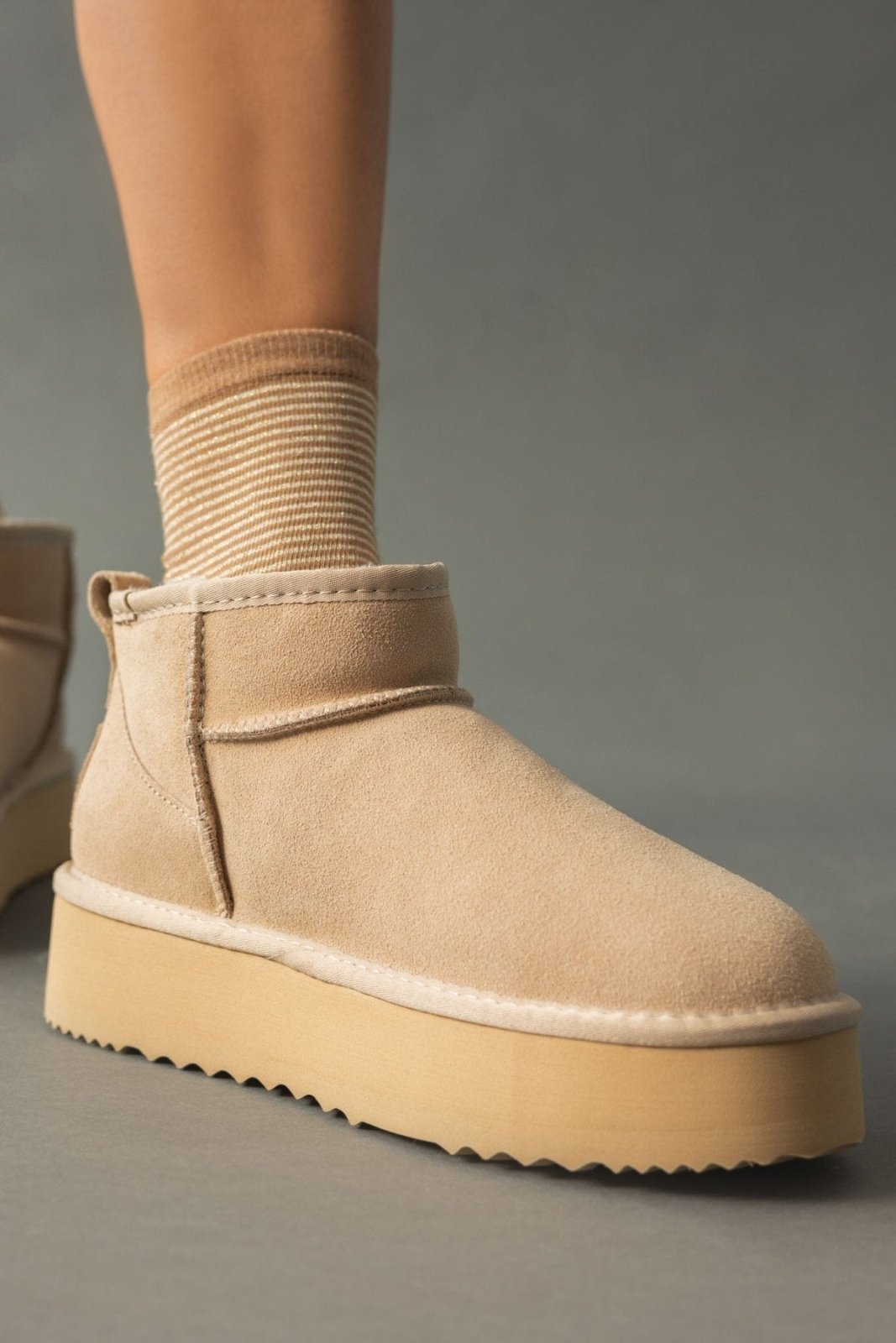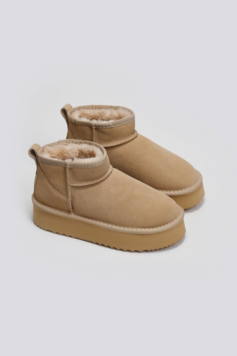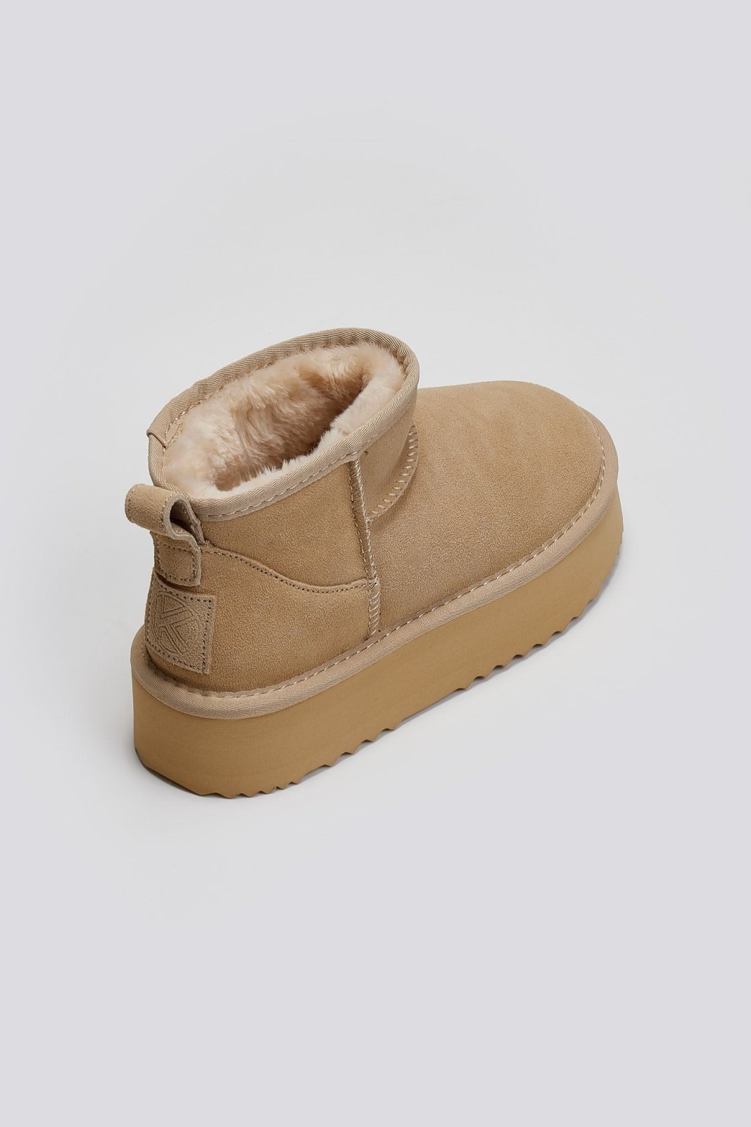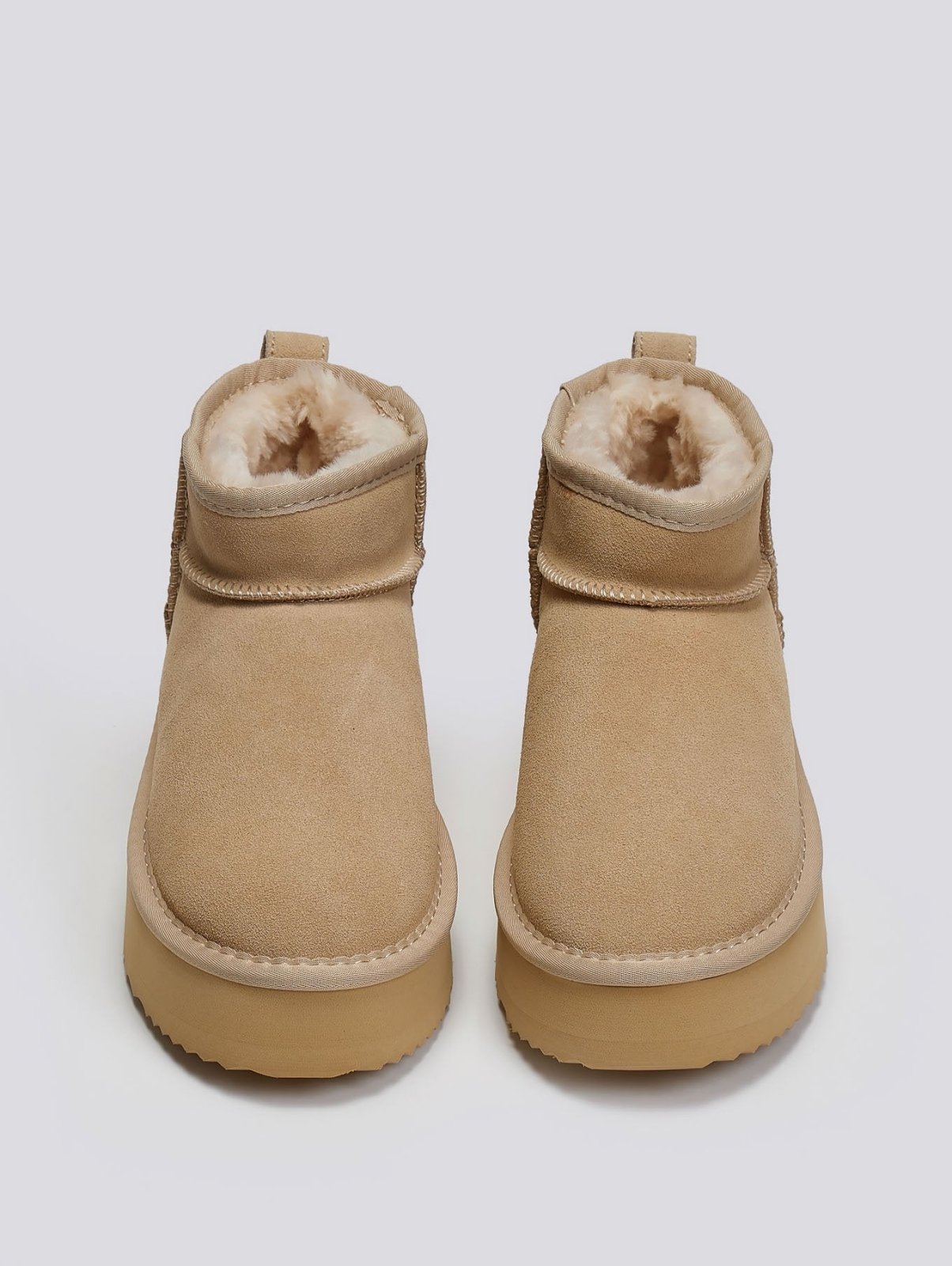 Μποτάκια αστραγάλου από γνήσιο δέρμα καστόρι KELARA. Επένδυση με συνθετική γούνα. Πλατφόρμα ελαφριά σόλα.