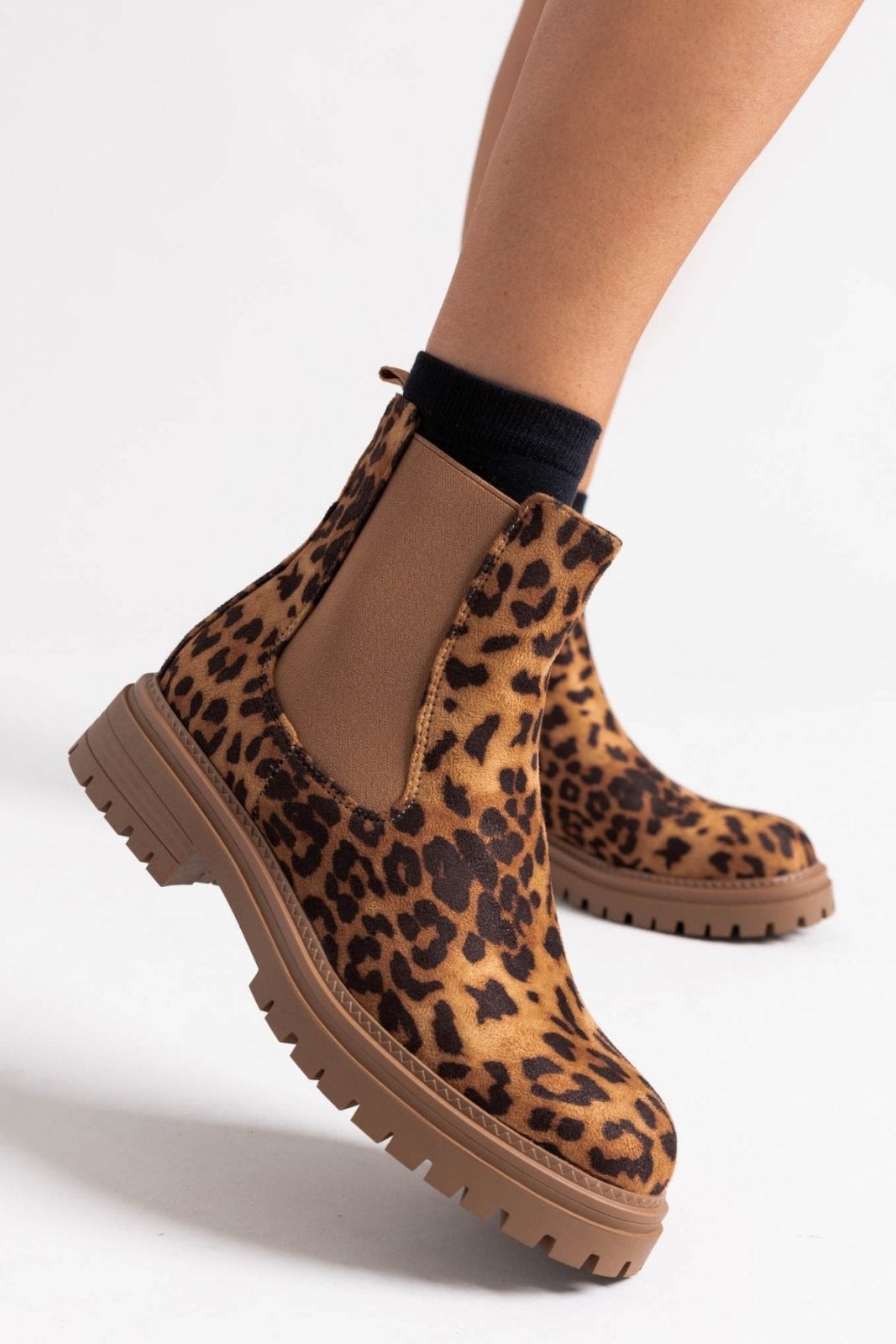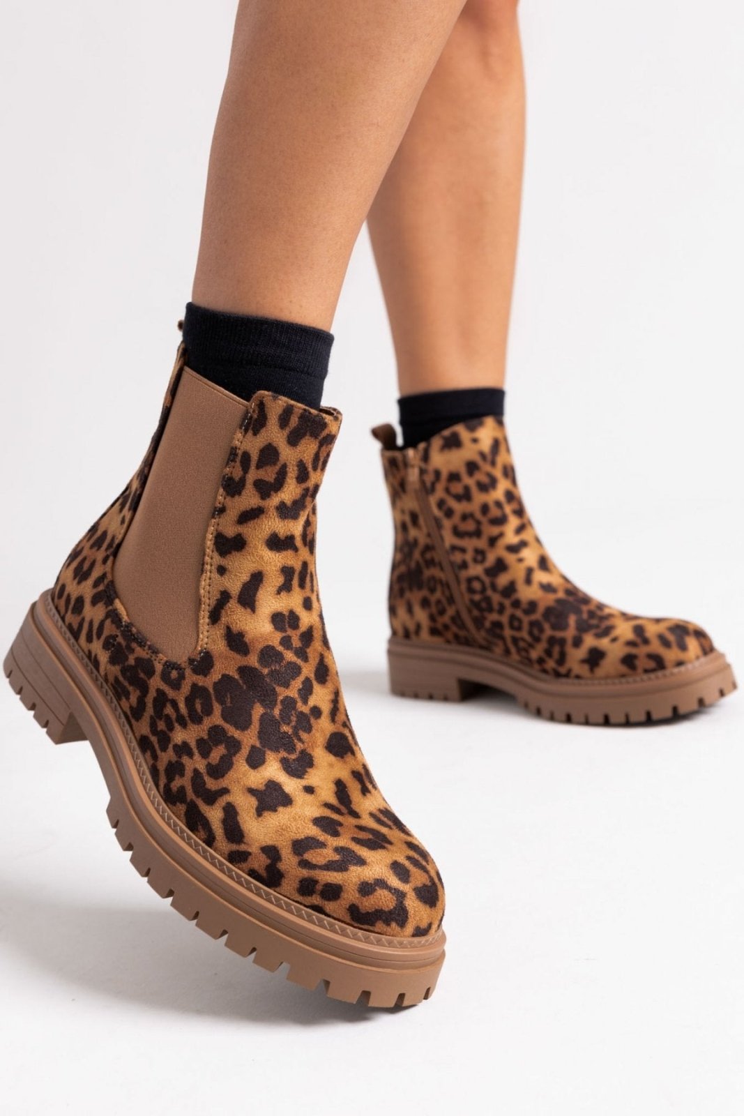 Μποτάκια chelsea suede. Έχουν λάστιχο στην εξωτερική τους πλευρά. Κλείνουν με φερμουάρ.
