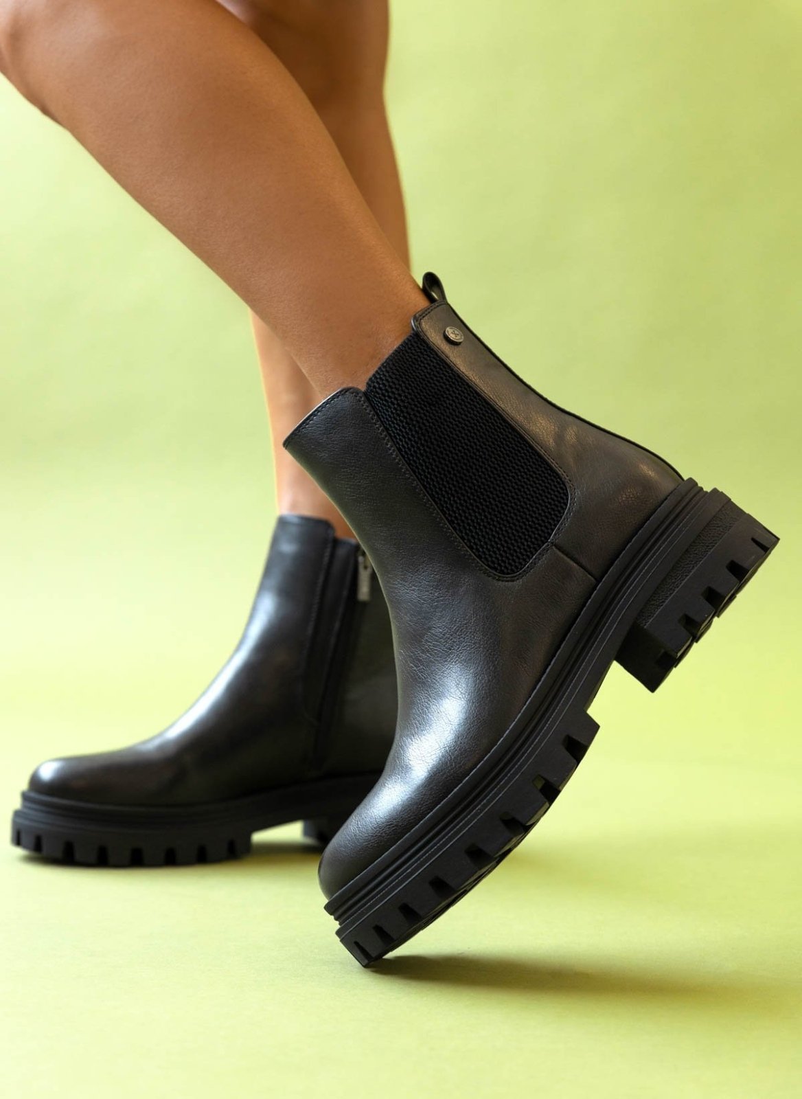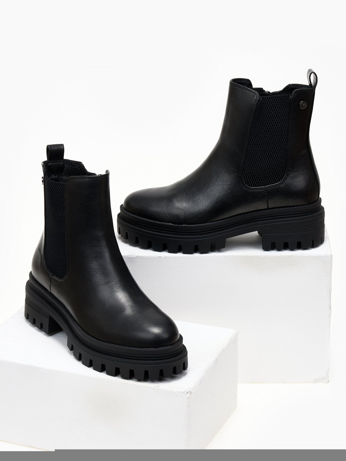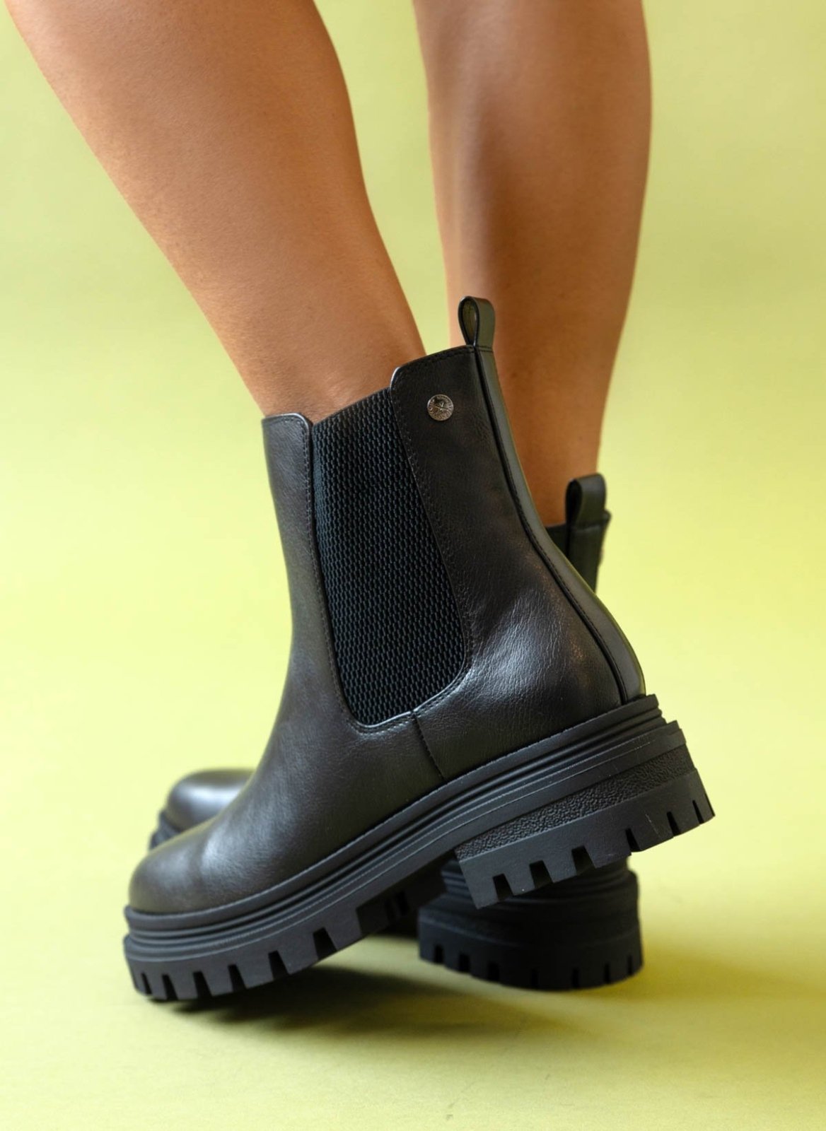 Μποτάκια chelsea Xti. Λάστιχο με σχέδιο στην εξωτερική τους πλευρά. Κλείνουν με φερμουάρ στο πλάι. Διακριτικό μεταλλικό λογότυπο στο επάνω μέρος. Comfort μαλακός πάτος με memory foam. Εγκρίθηκε η Peta Vegan.