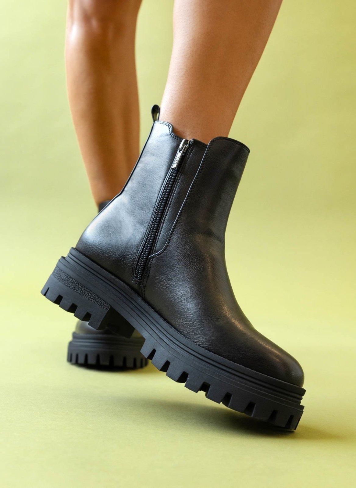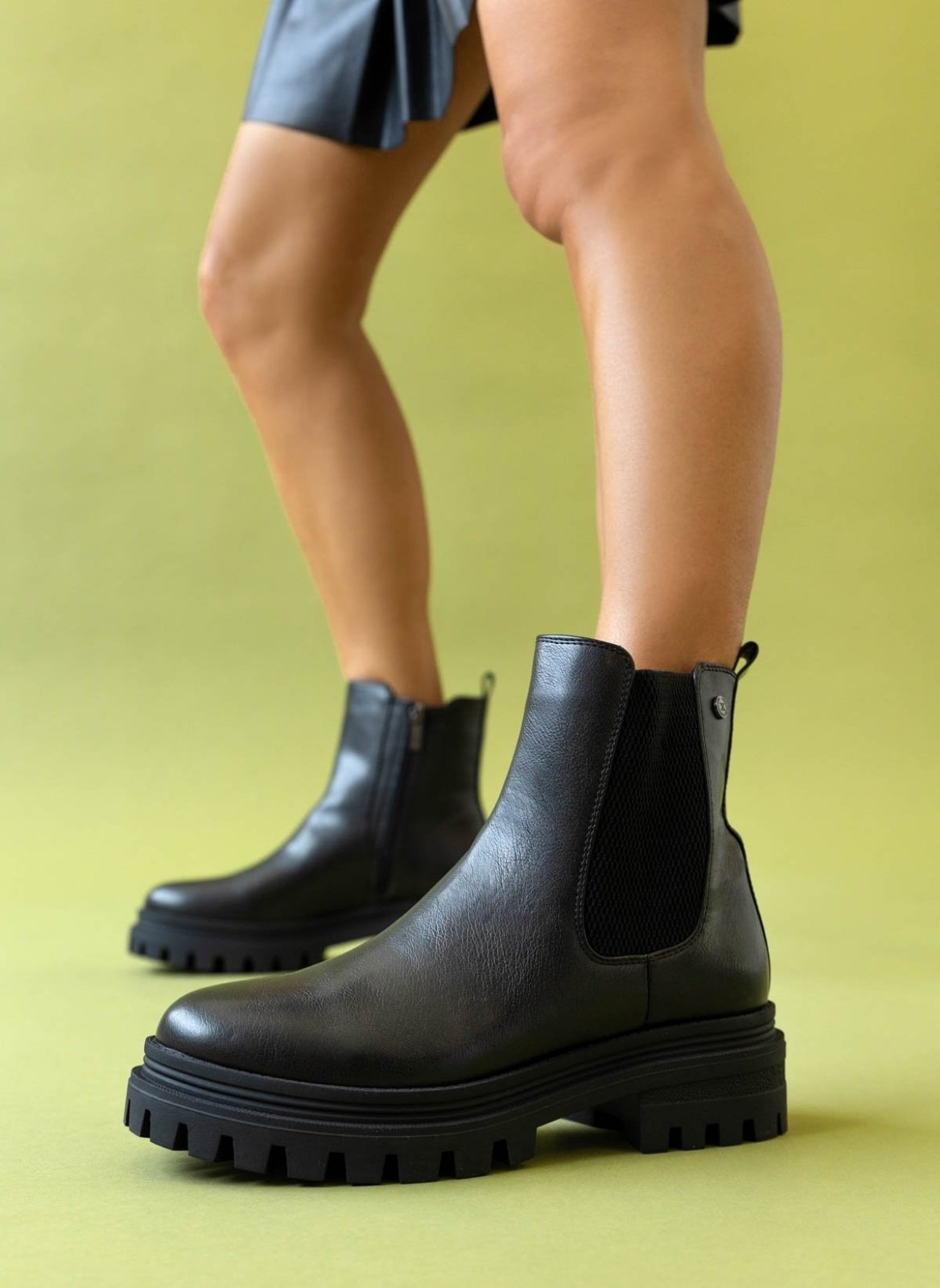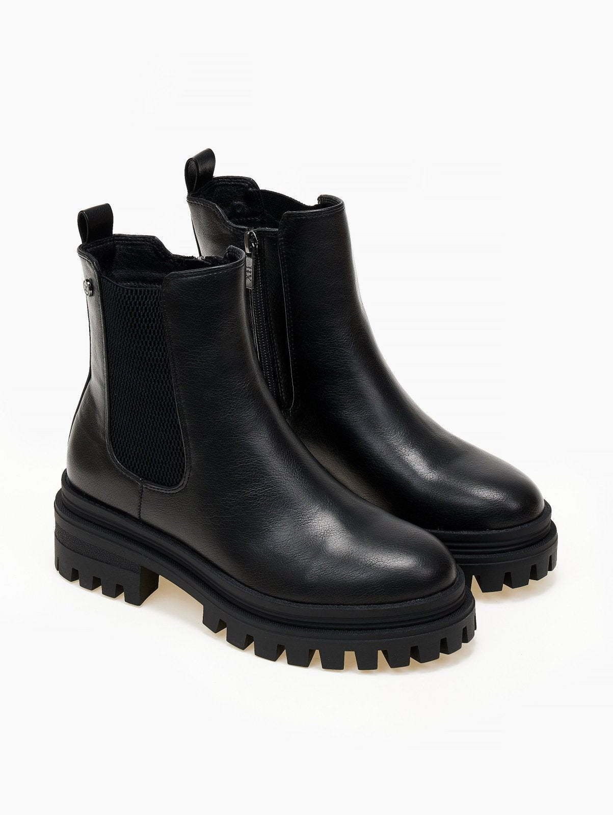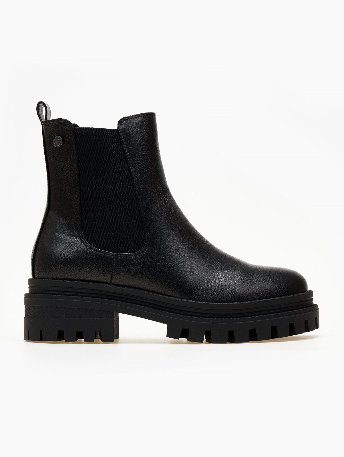 Μποτάκια chelsea Xti. Λάστιχο με σχέδιο στην εξωτερική τους πλευρά. Κλείνουν με φερμουάρ στο πλάι. Διακριτικό μεταλλικό λογότυπο στο επάνω μέρος. Comfort μαλακός πάτος με memory foam. Εγκρίθηκε η Peta Vegan.