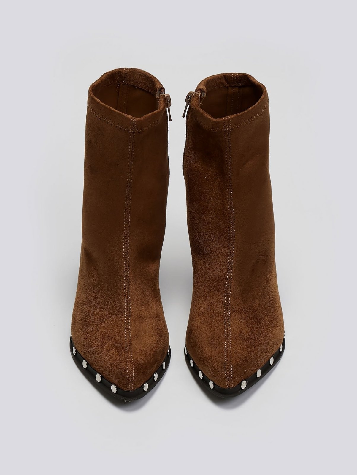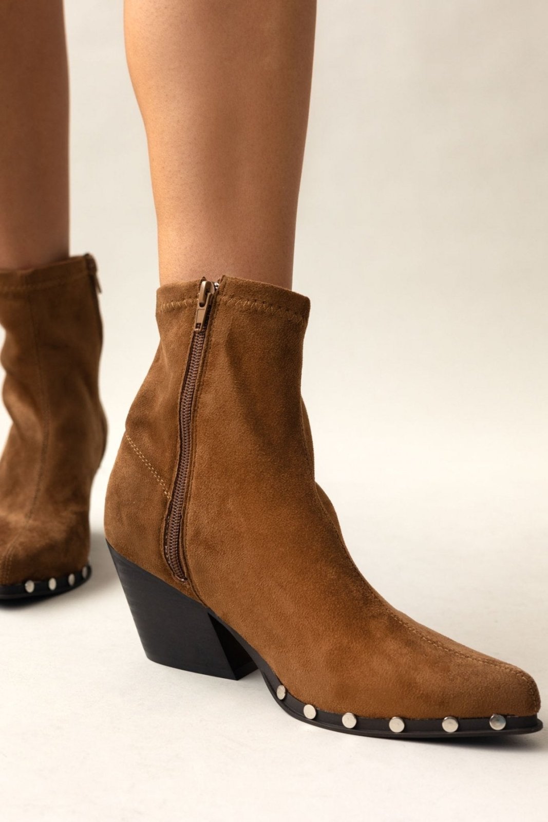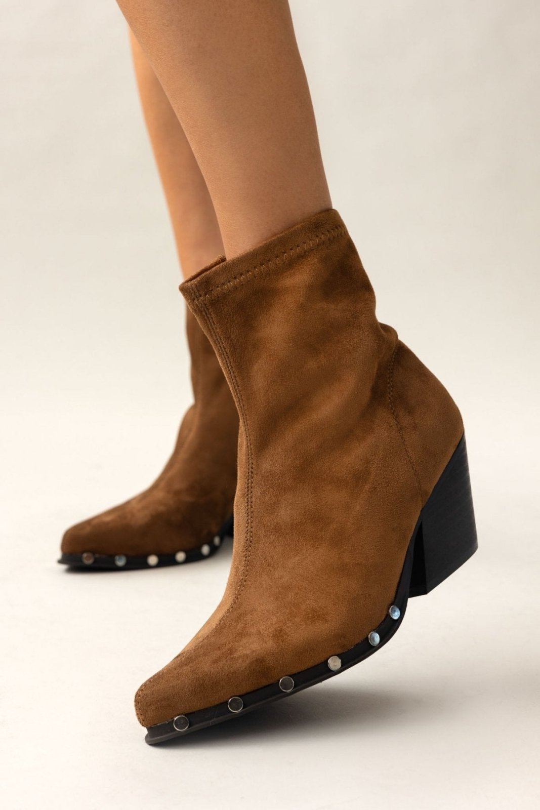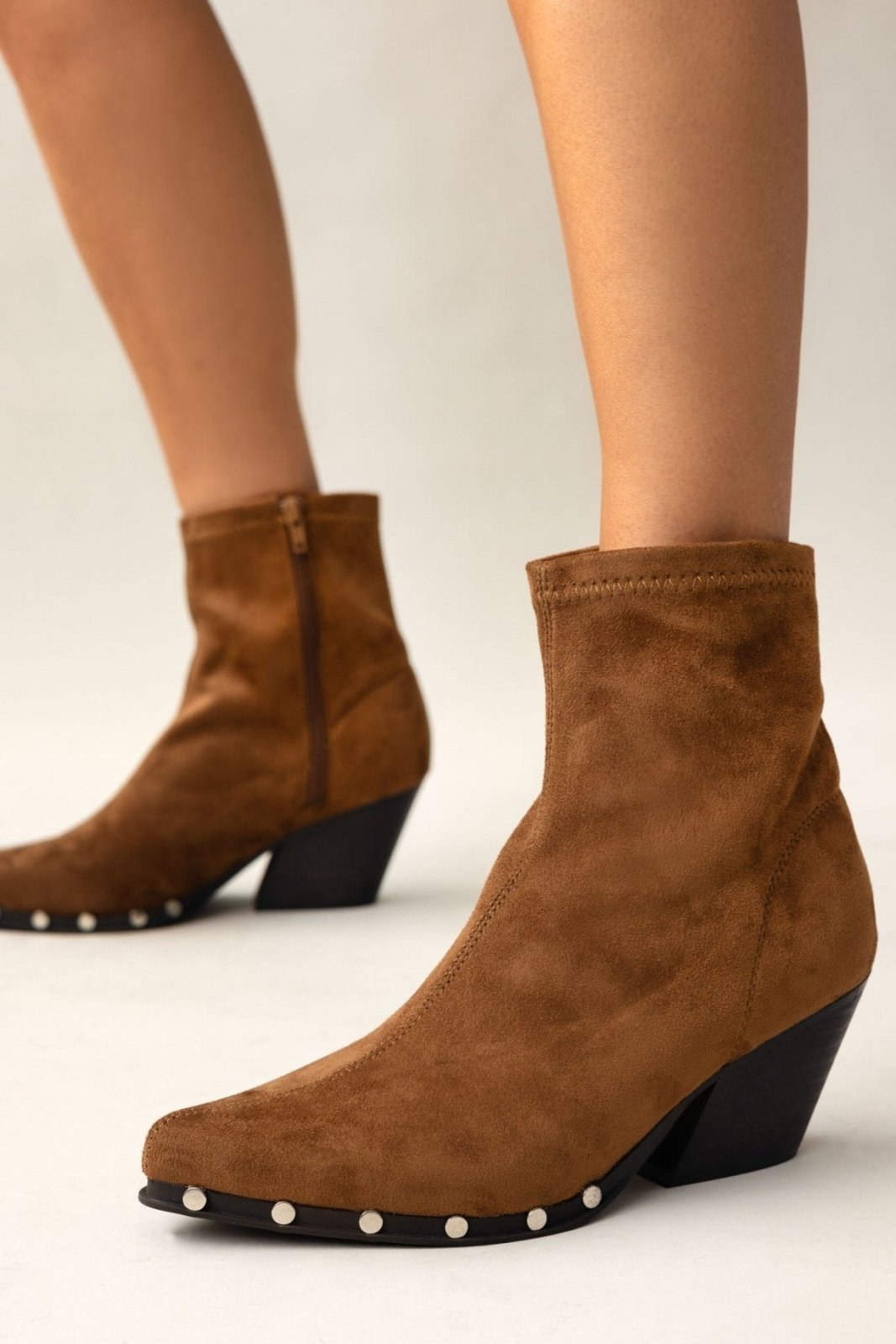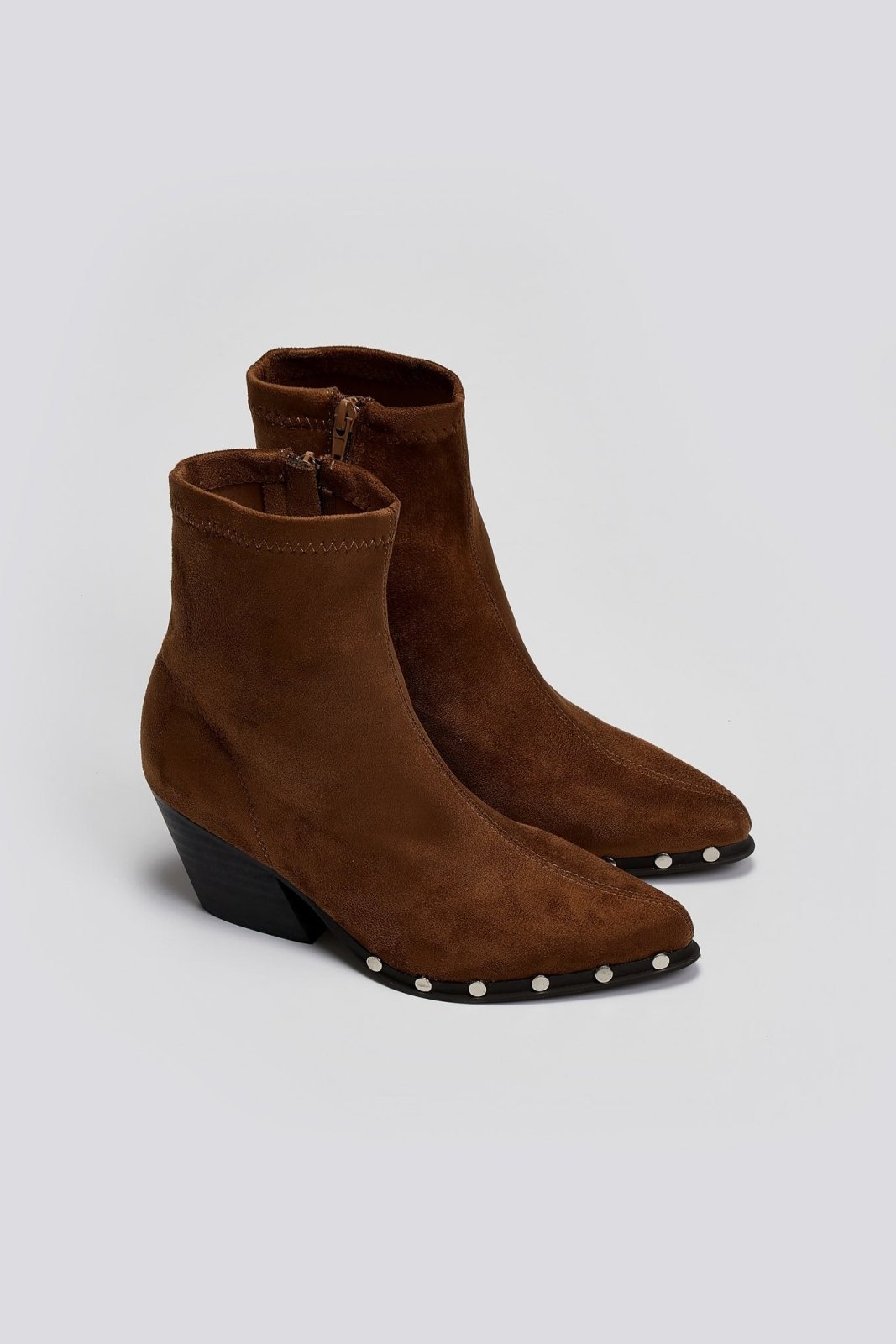 Μποτάκια cowboy suede κάλτσα CORINA. Μεταλλικά τρουκς περιμετρικά της σόλας. Μυτερή φόρμα.