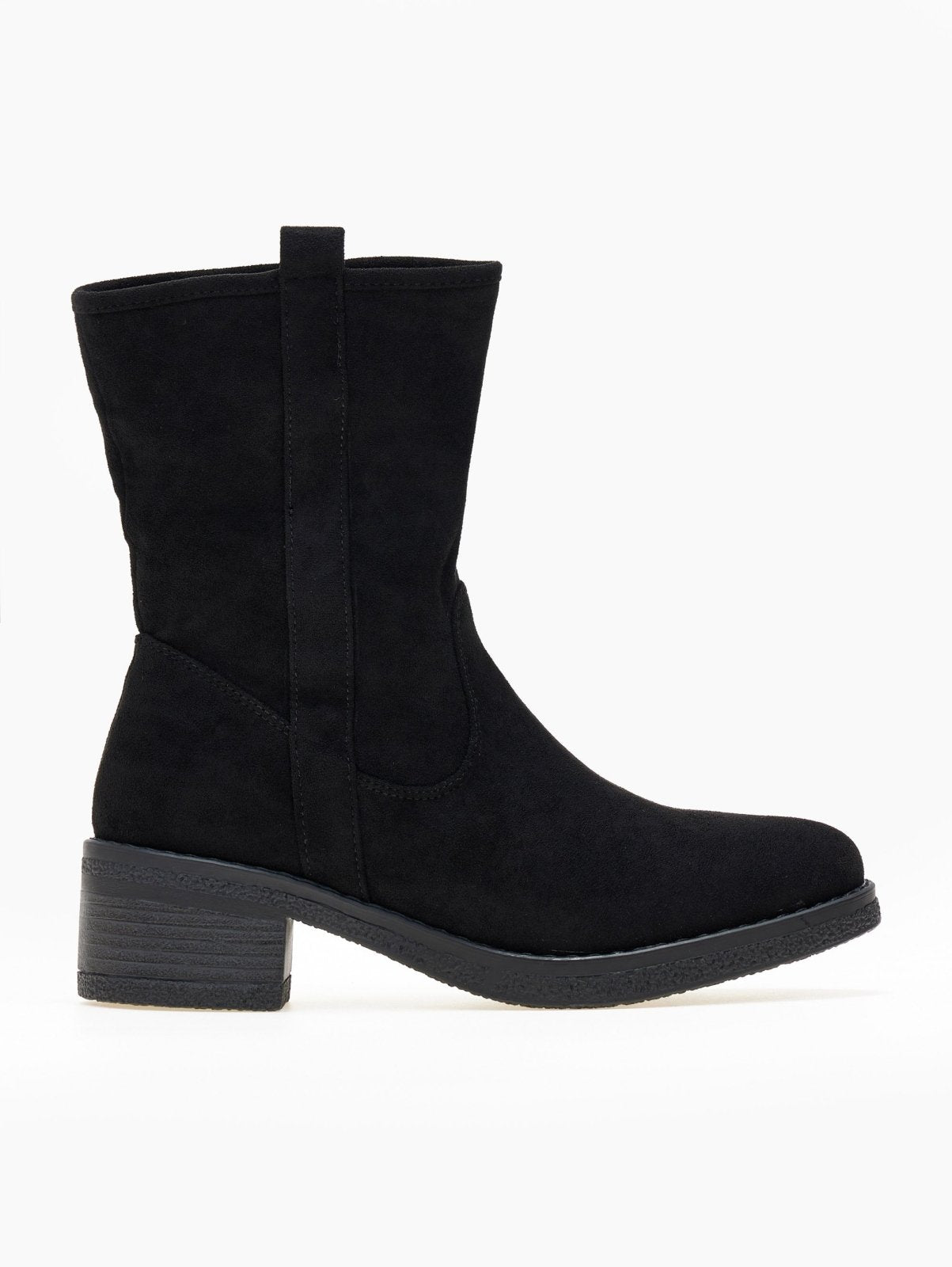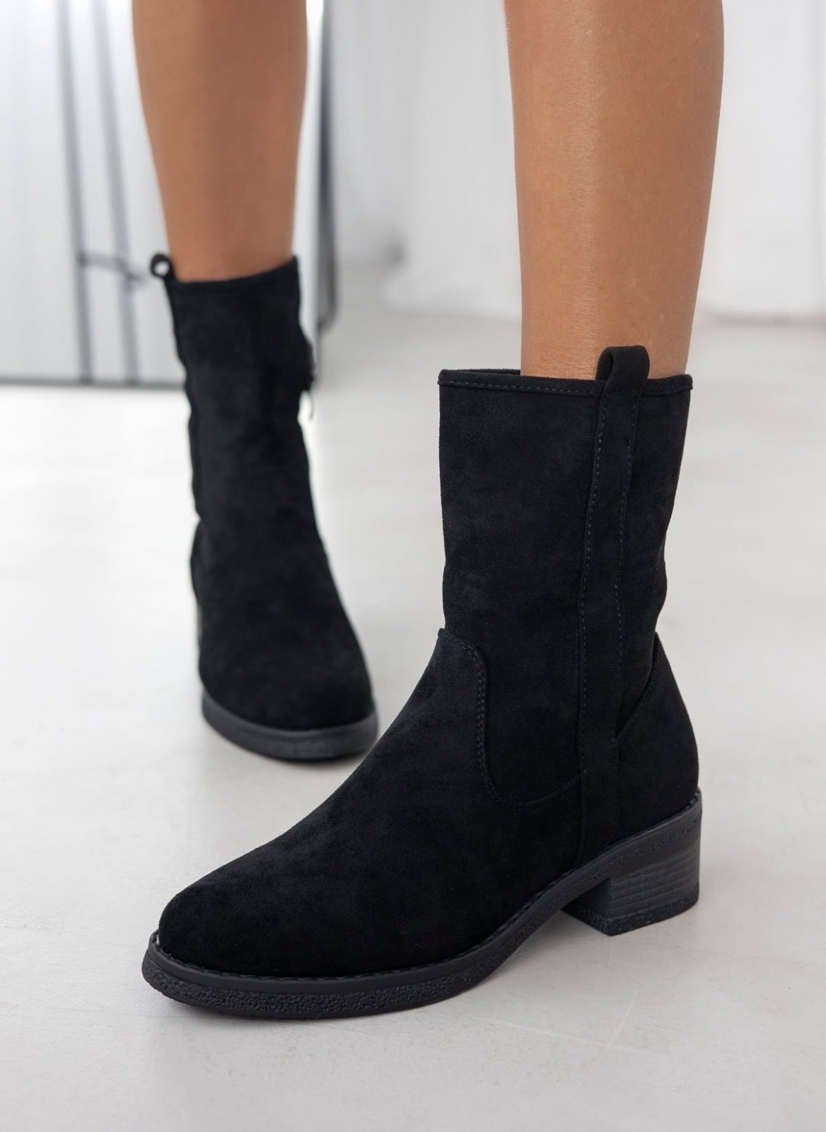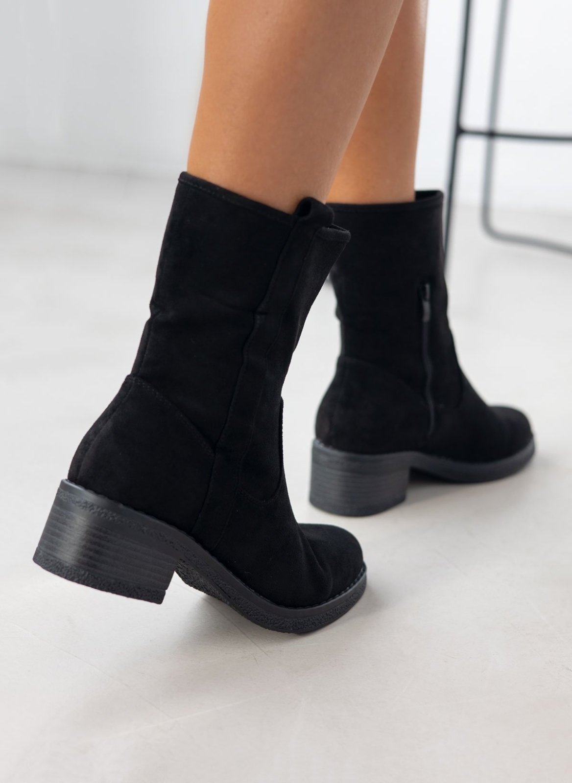 Μποτάκια σουέτ με εξωτερική ραφή - Μαύρο