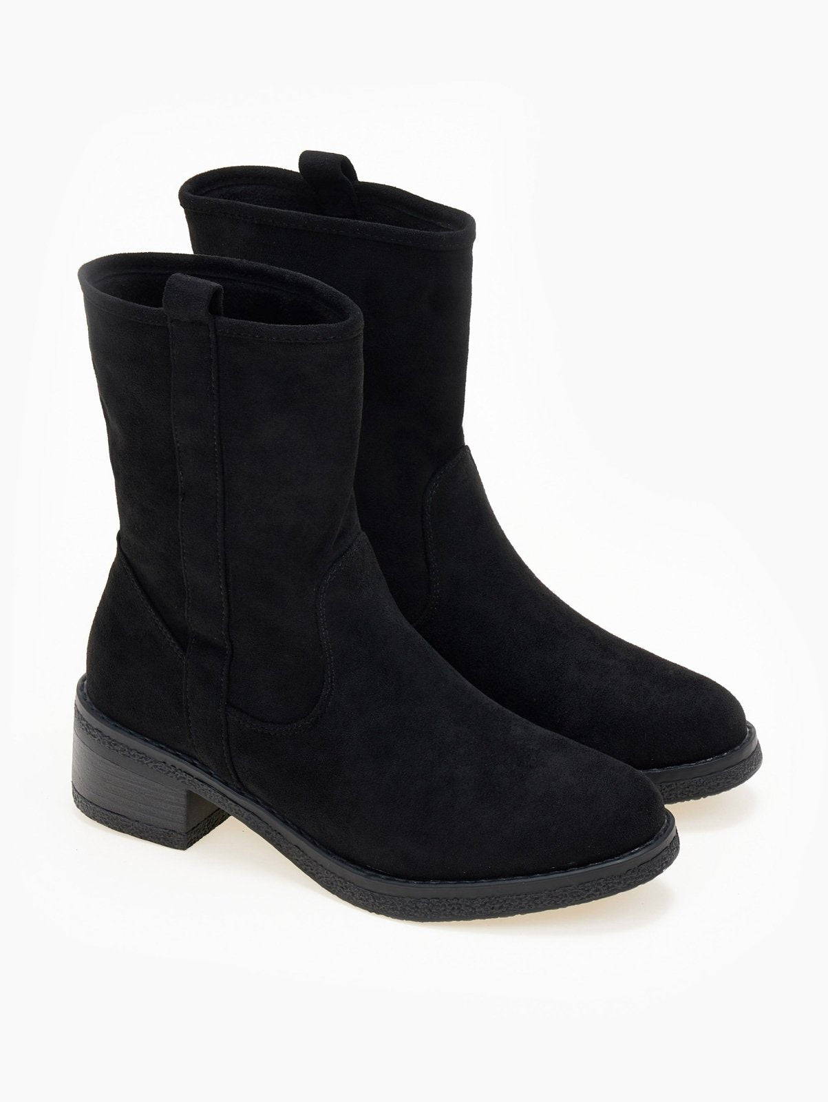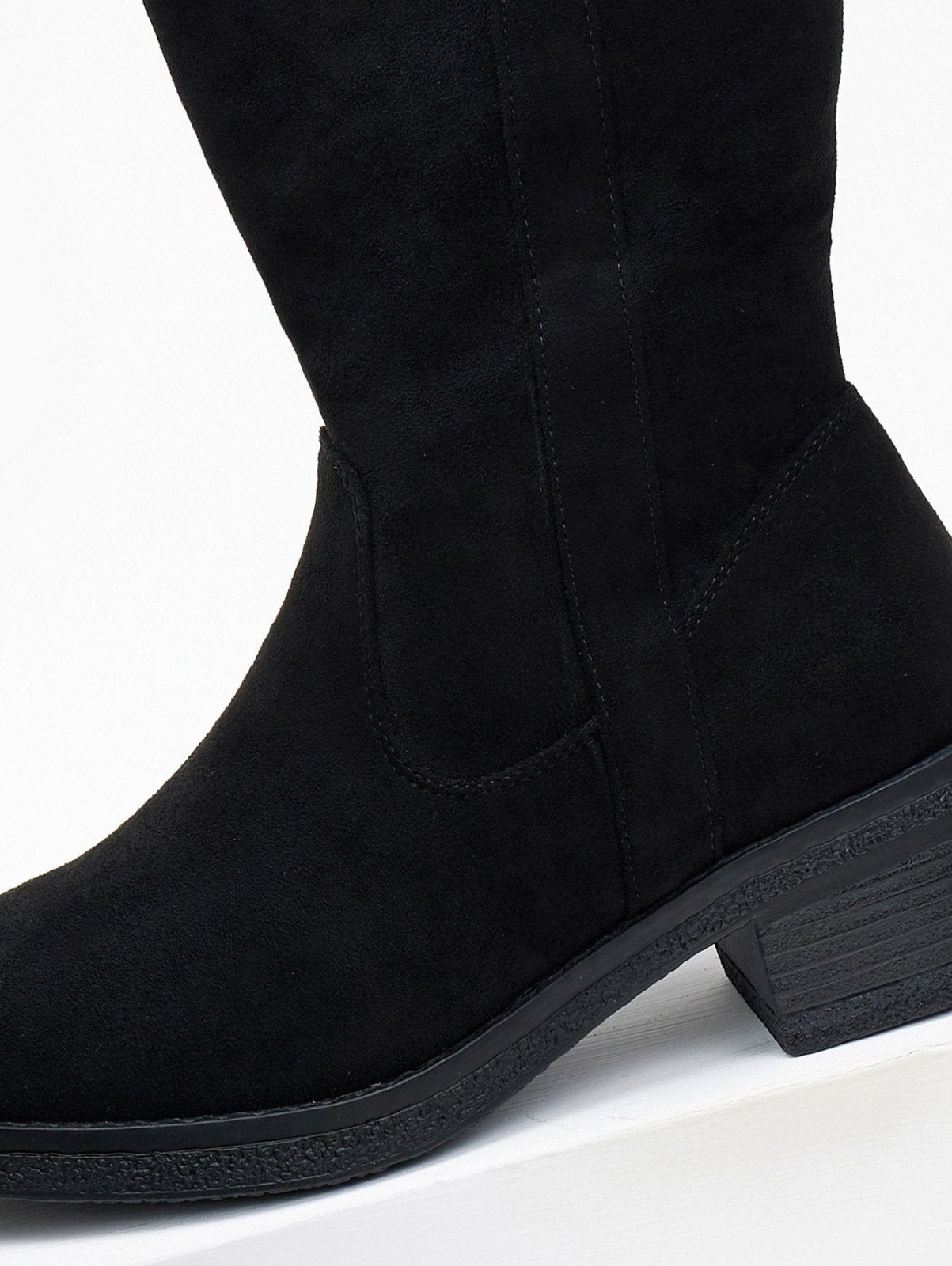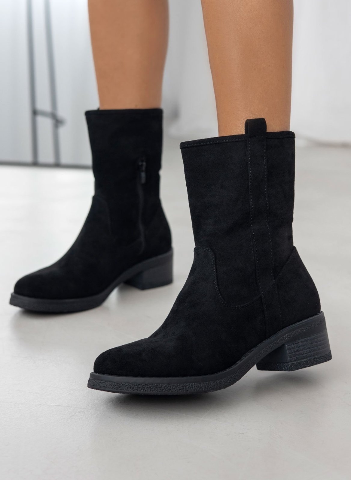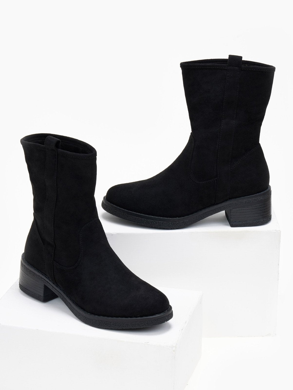 Μποτάκια σουέτ με εξωτερική ραφή - Μαύρο