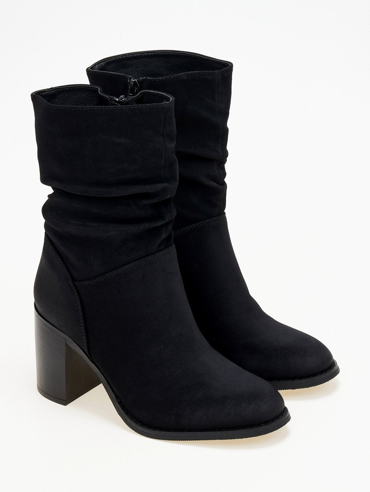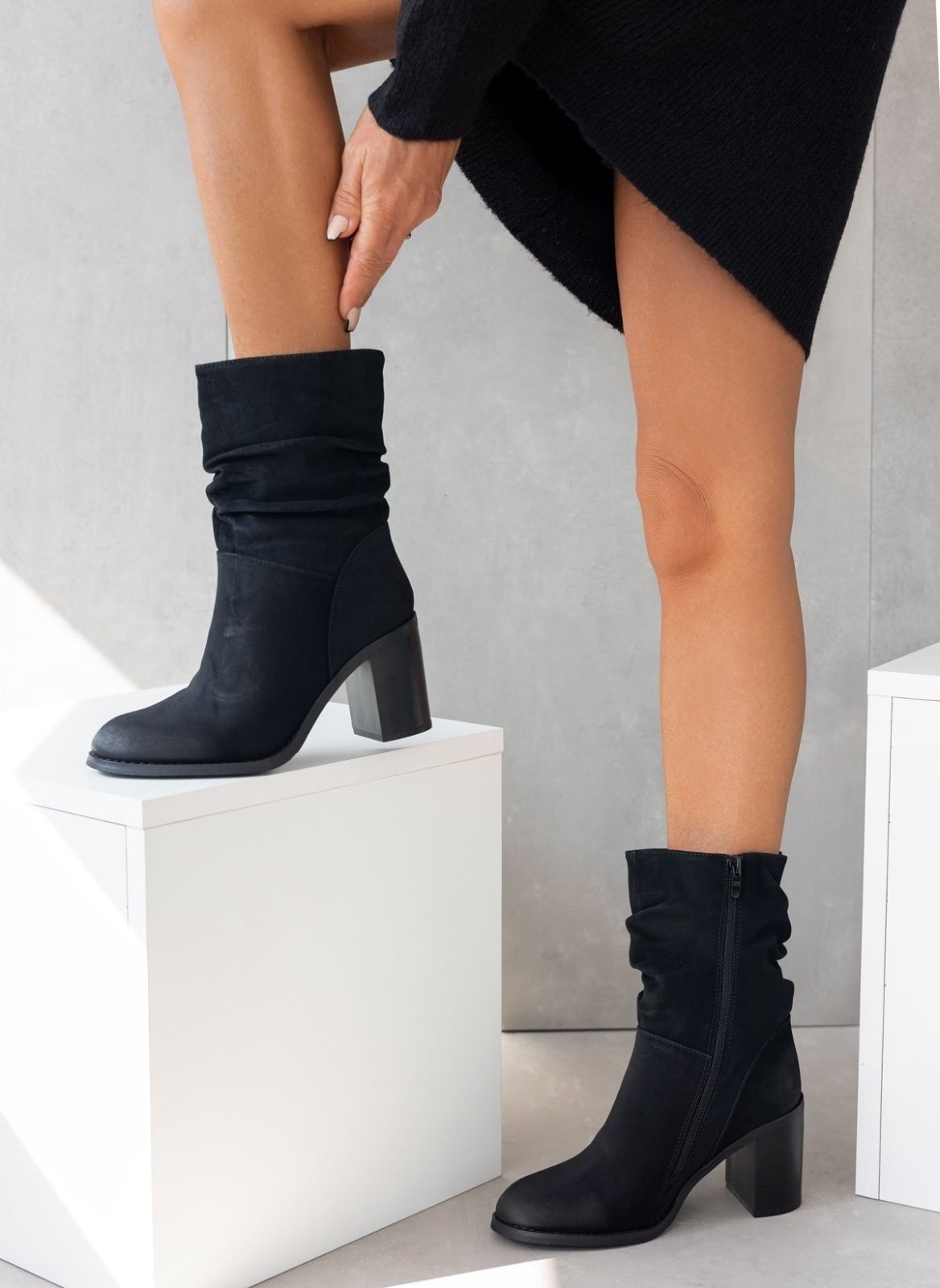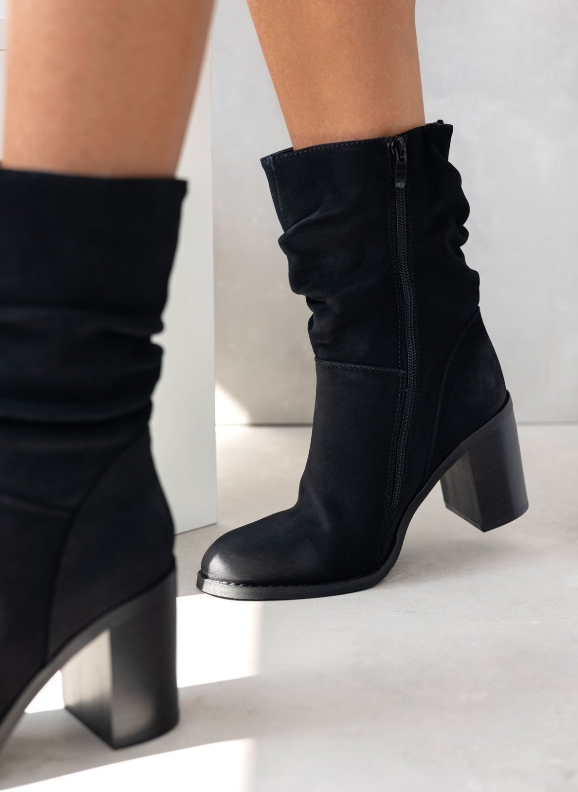Μποτάκια suede Erynn. σχέδιο σούρα στο ύψος του αστραγάλου. Στρογγυλή φόρμα. Ψηλό χοντρό τακούνι. Κλείνουν με φερμουάρ.