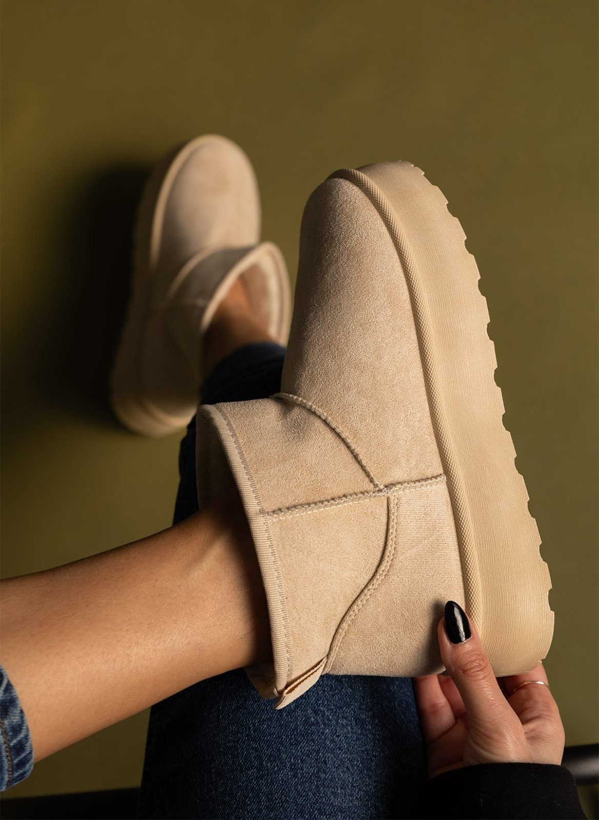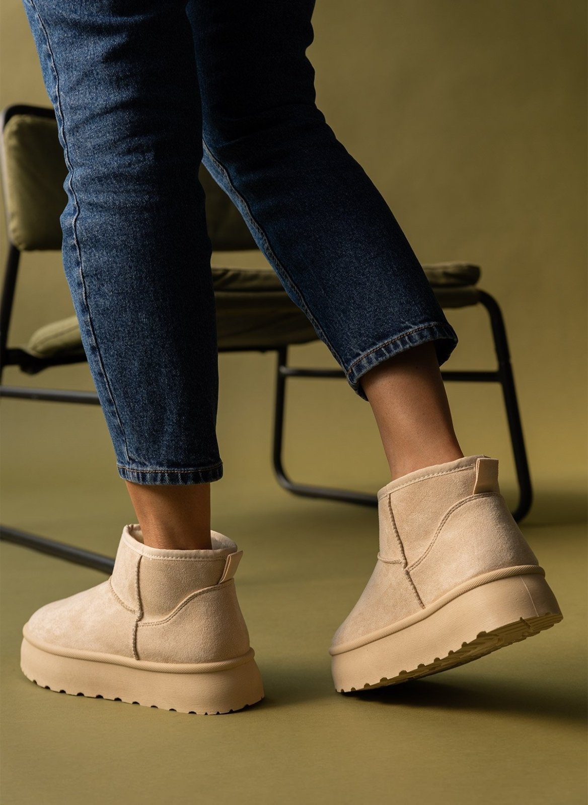 Μποτάκια σουέτ με συνθετική γούνα - Μπεζ