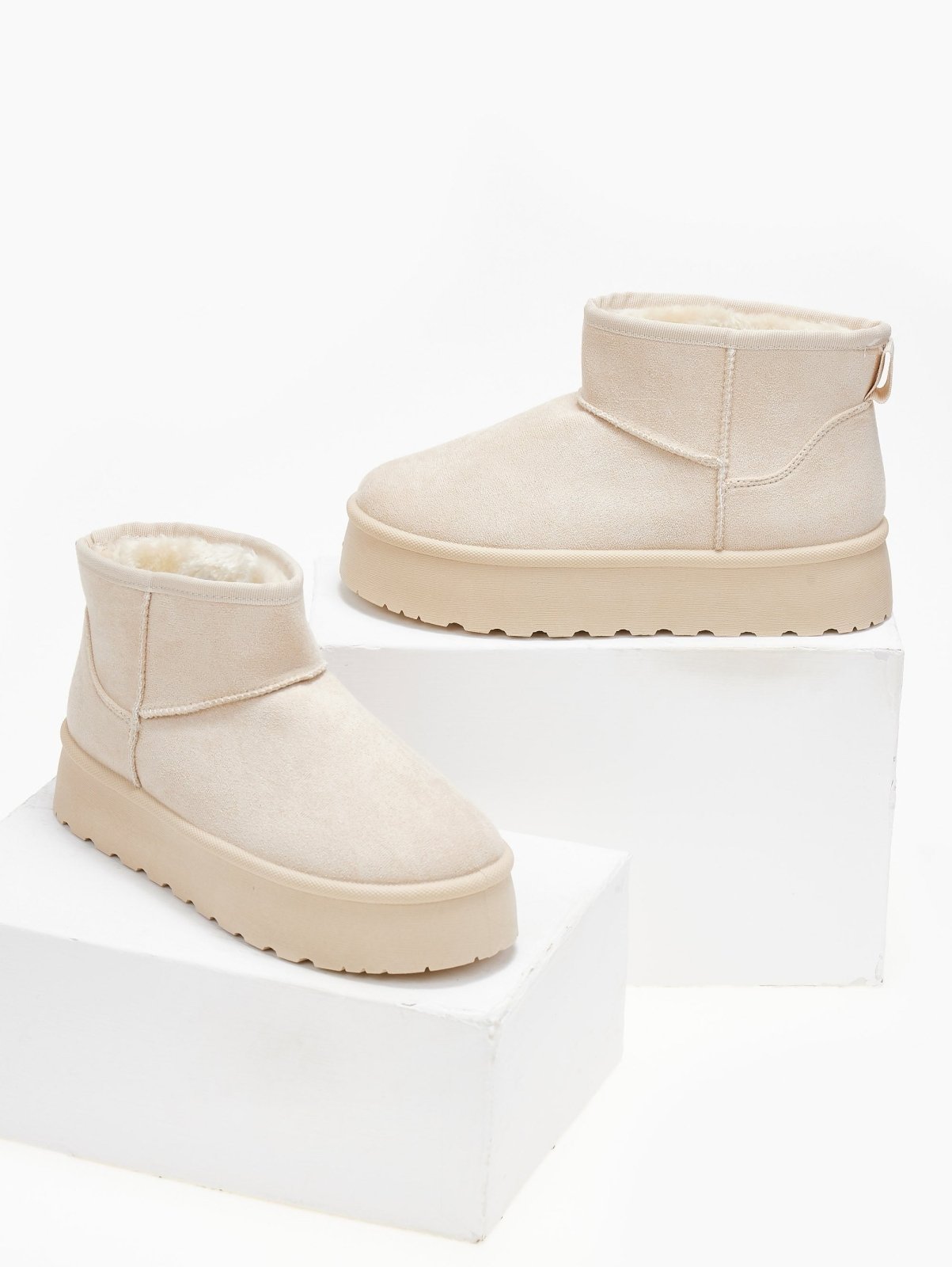 Μποτάκια σουέντ με ψηλή σόλα. επένδυση από συνθετική γούνα.