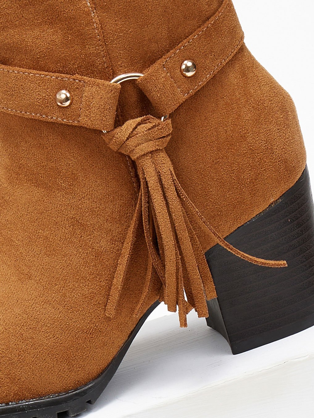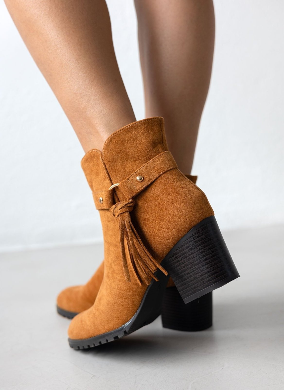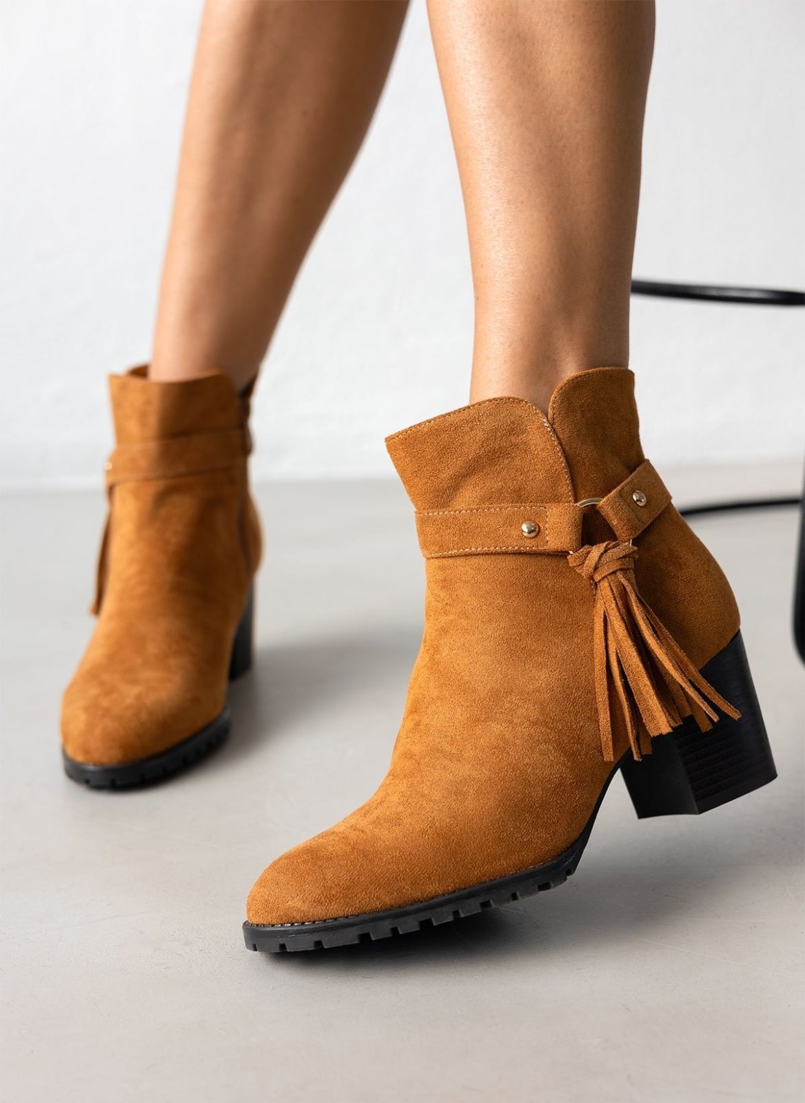 Μποτάκια σουέντ με ζωνάκι και κρόσσια - Κάμελ