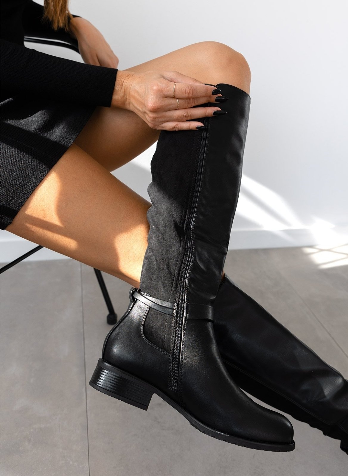 Μπότες ιππασίας σε συνδυασμό υλικών Erynn - Μαύρο