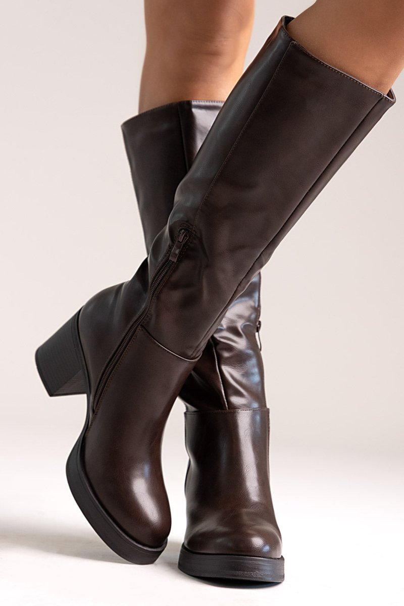 Μπότες με Ψηλό Τακούνι Block - Σκούρο Καφέ Ματ