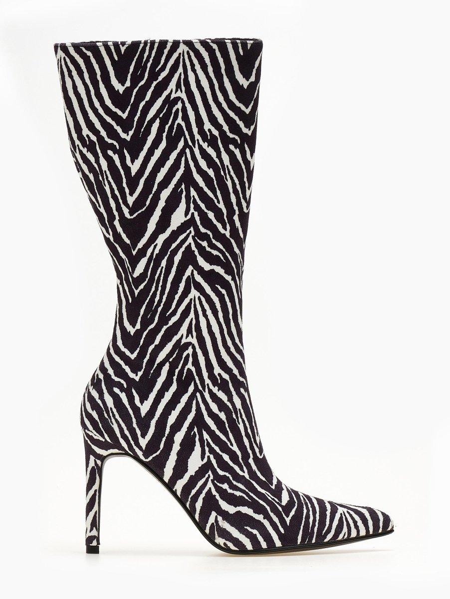 Μπότες μυτερές σουέντ με λεπτό τακούνι - Λευκό/Μαύρο