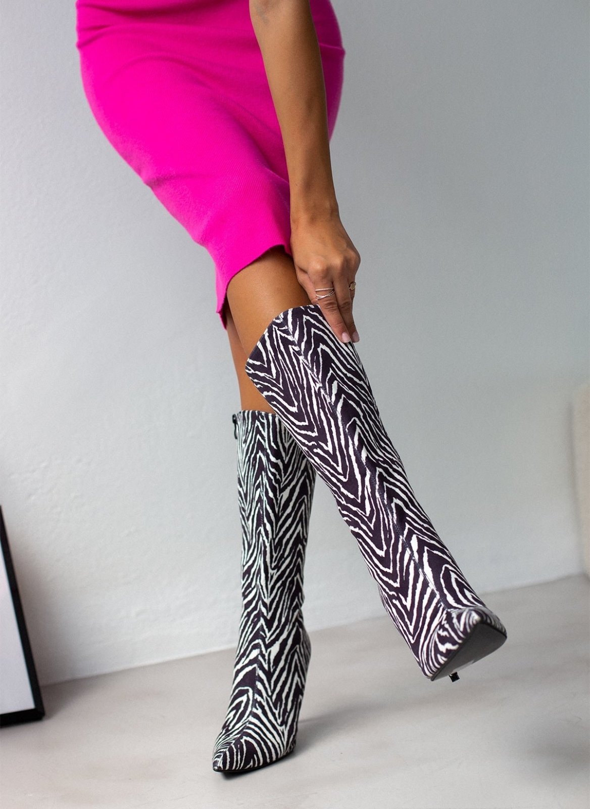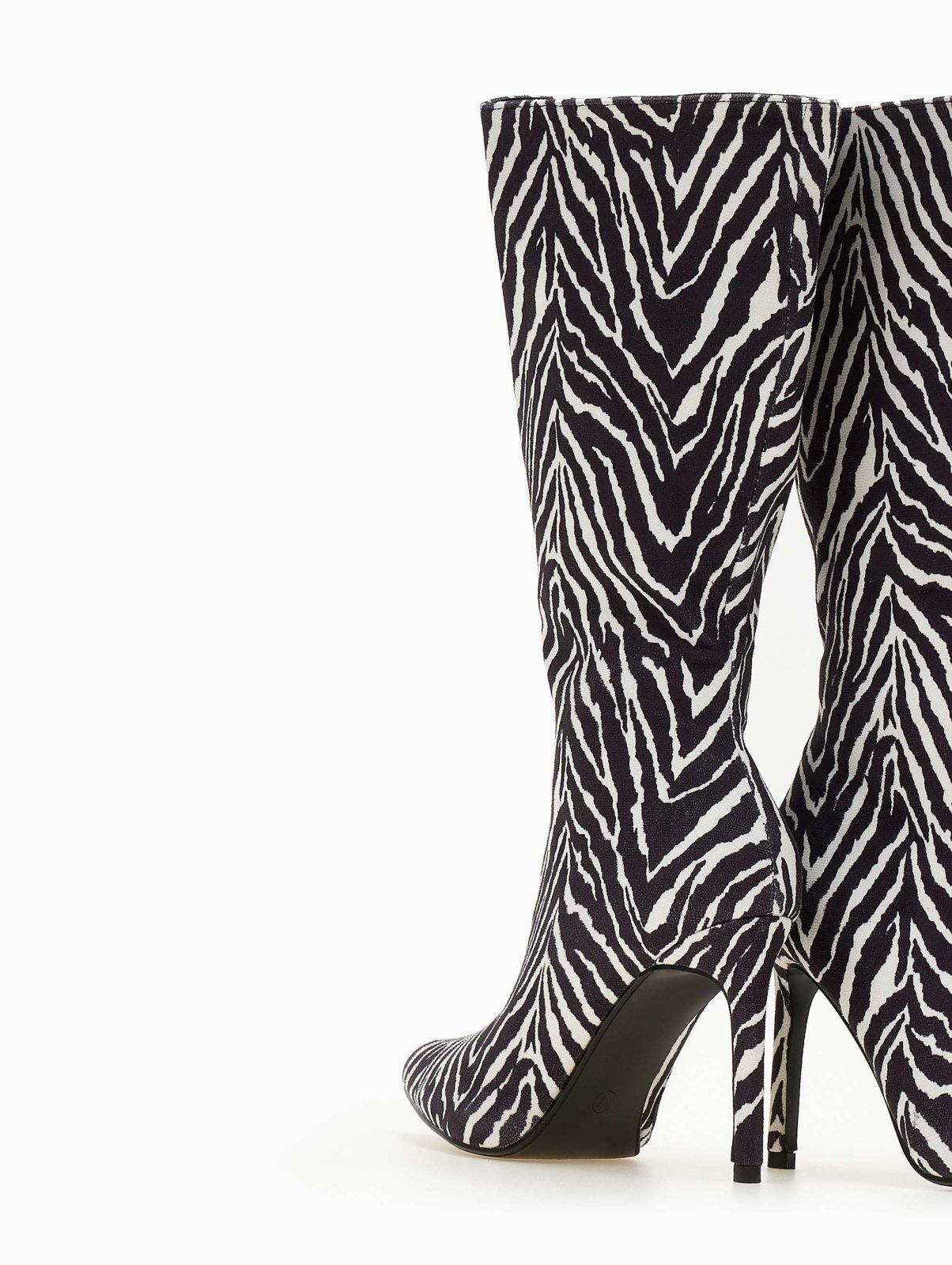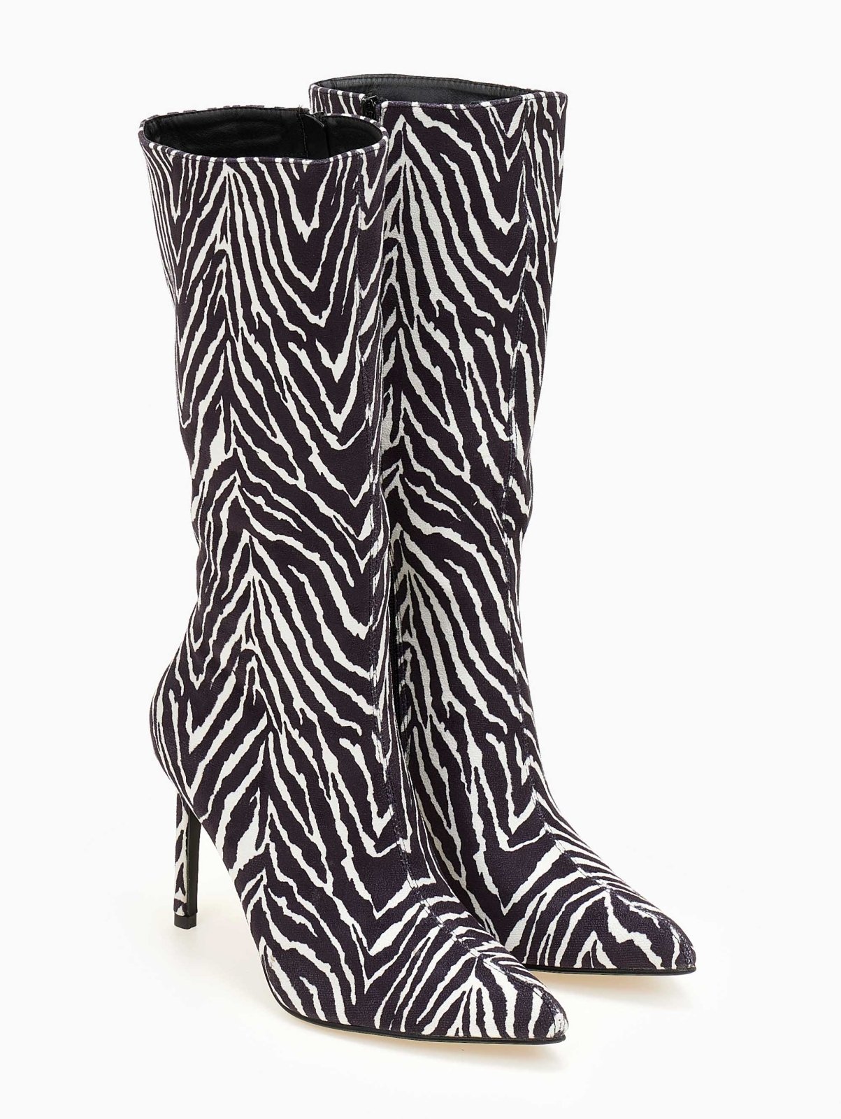Μπότες suede με λεπτό τακούνι. Φτάνουν στη μέση της γάμπας. Μυτερή φόρμα.