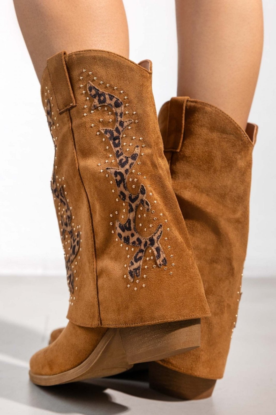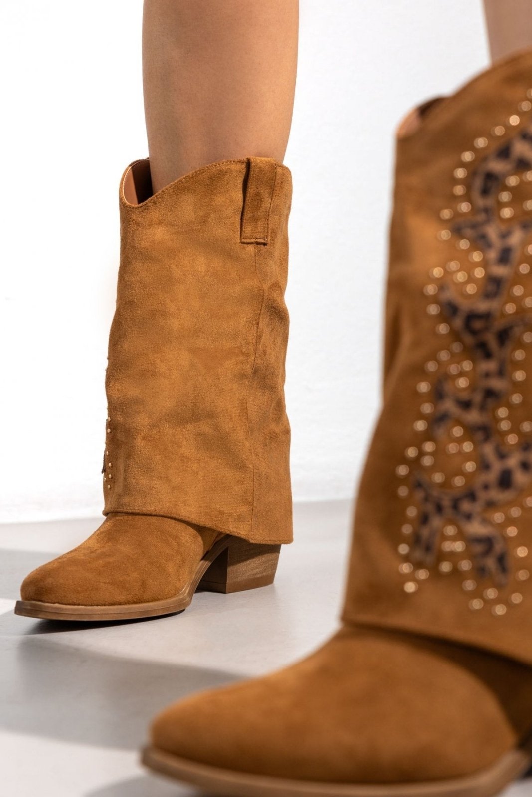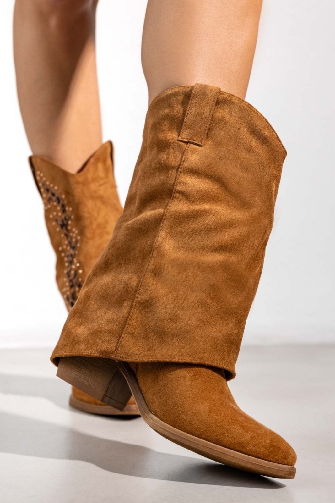 Μπότες suede μυτερές με γκέτα και τρουκς ERYNN - Κάμελ