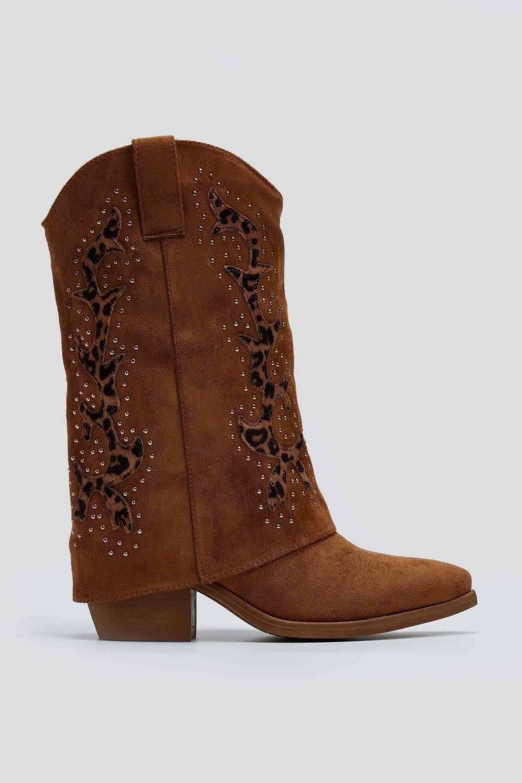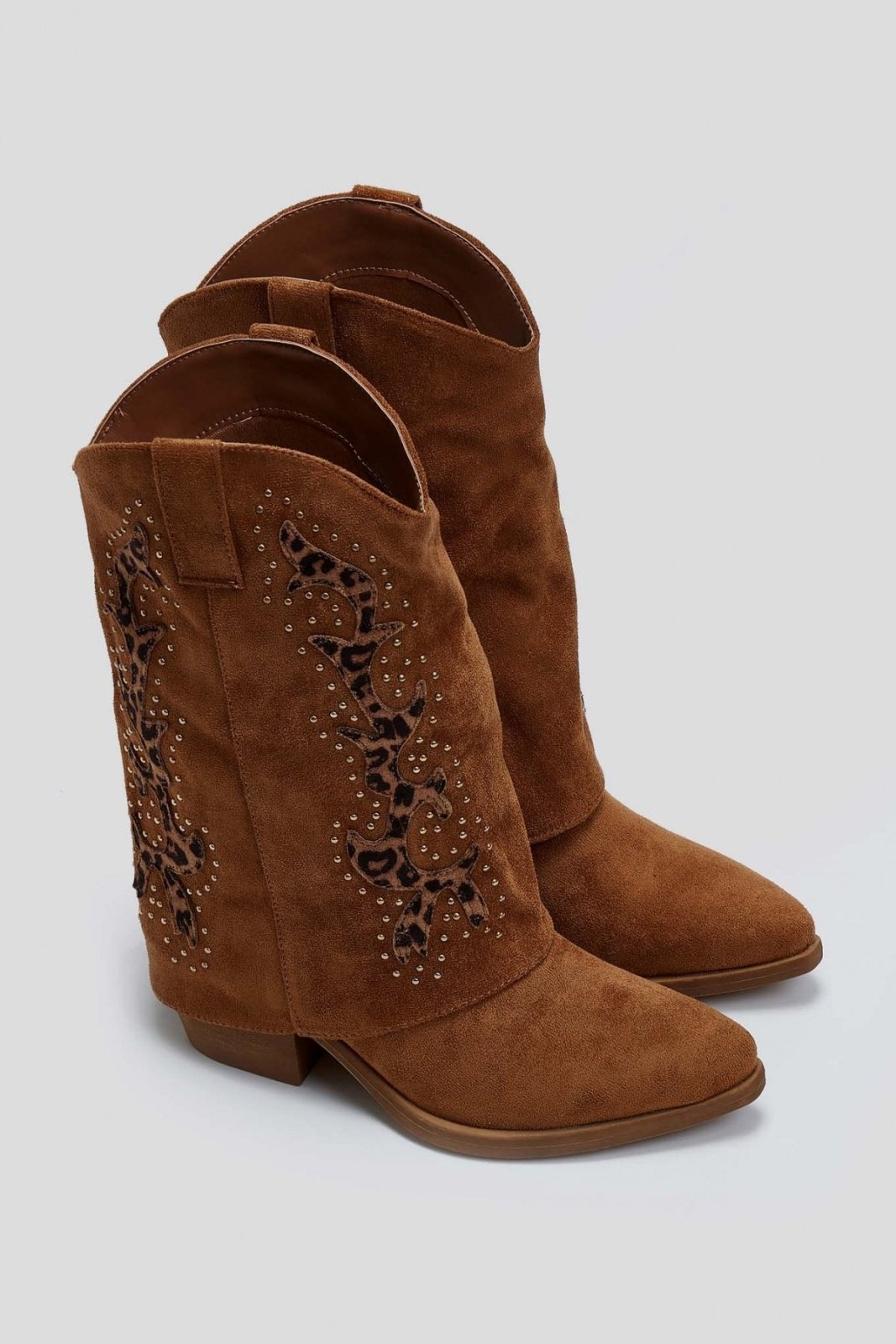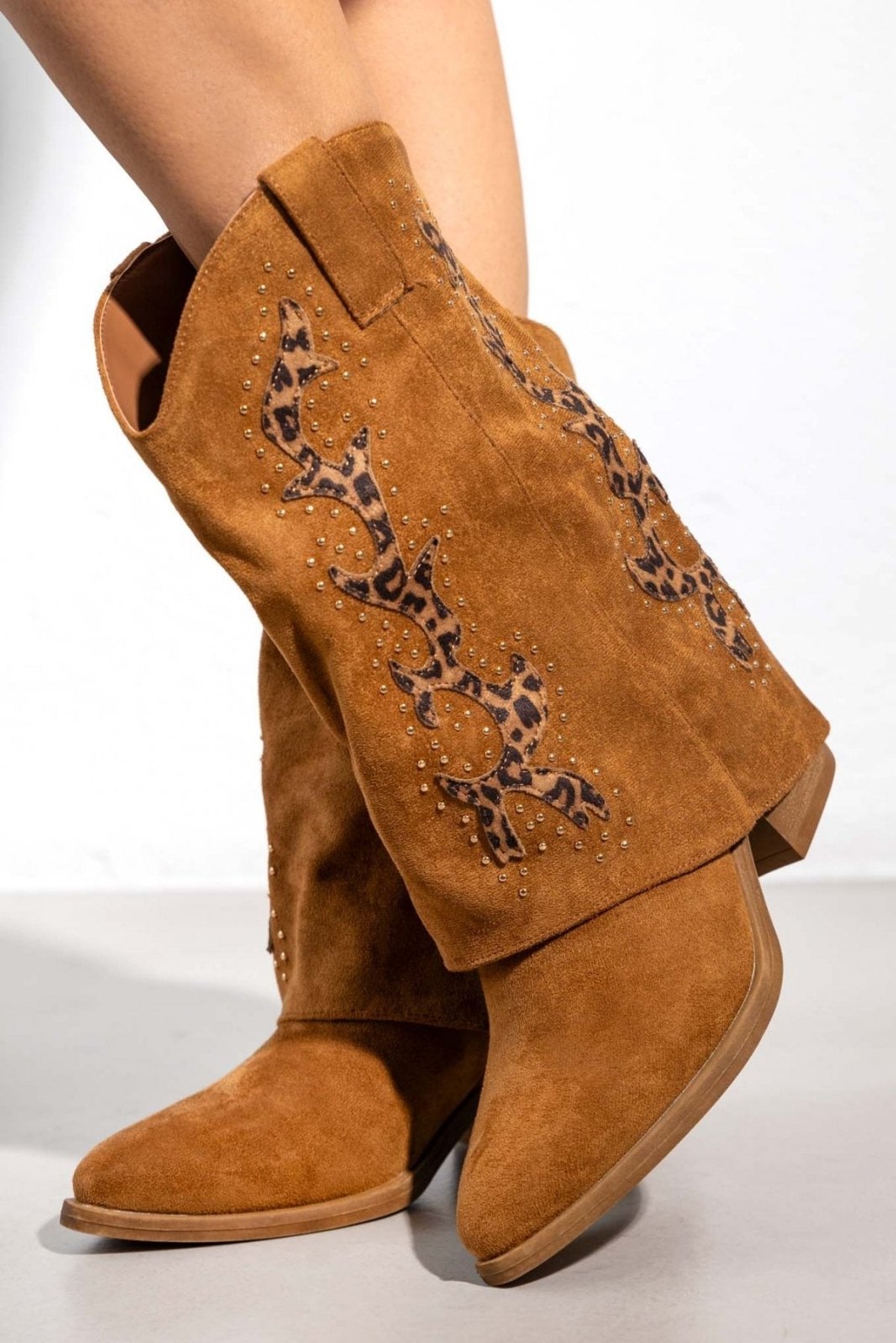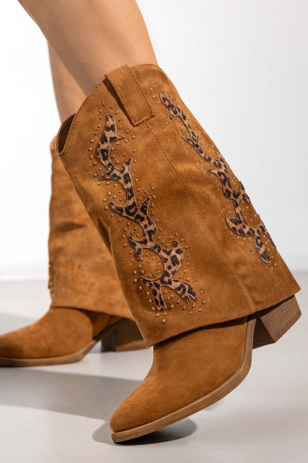 Μπότες suede μυτερές με γκέτα και τρουκς ERYNN - Κάμελ