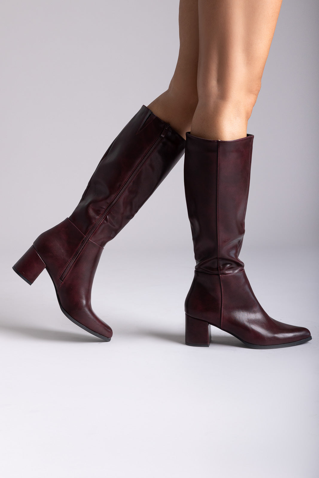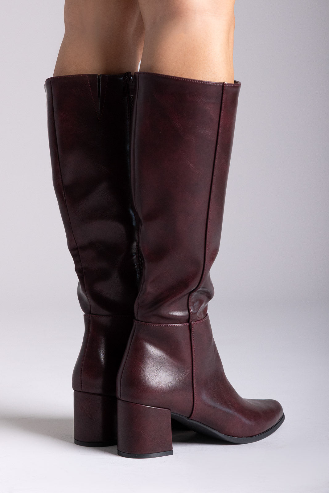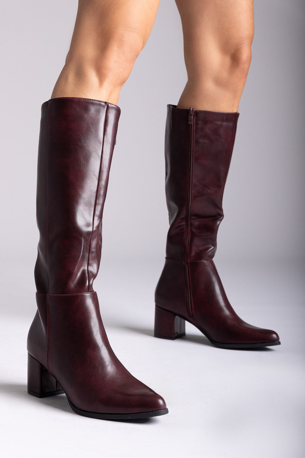 Μπότες με χαμηλό τετράγωνο τακούνι - μπορντό ματ