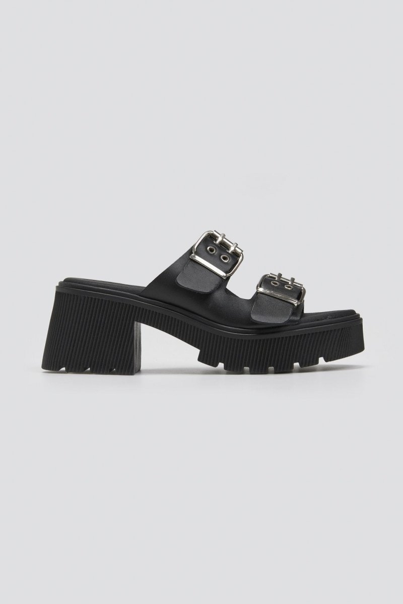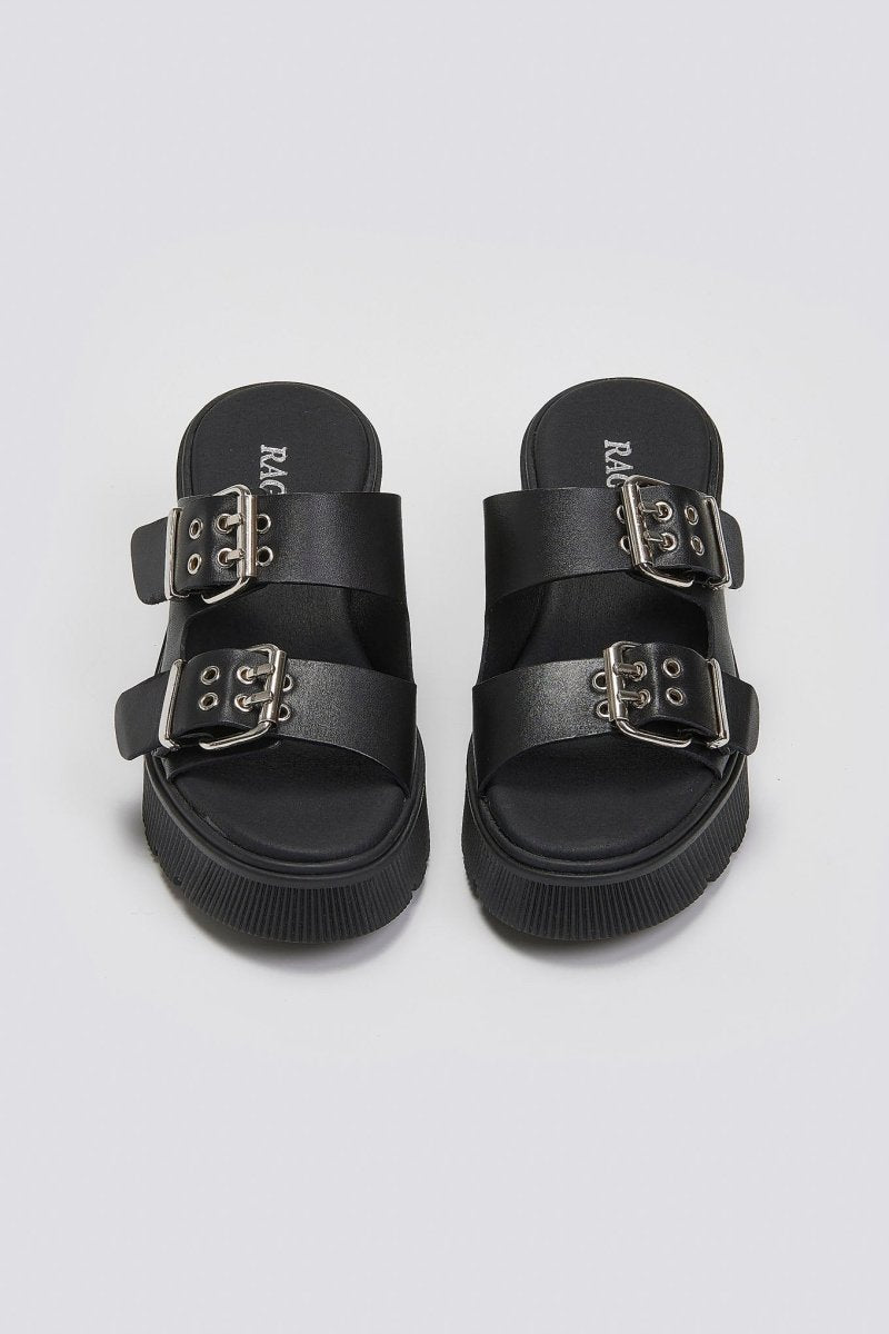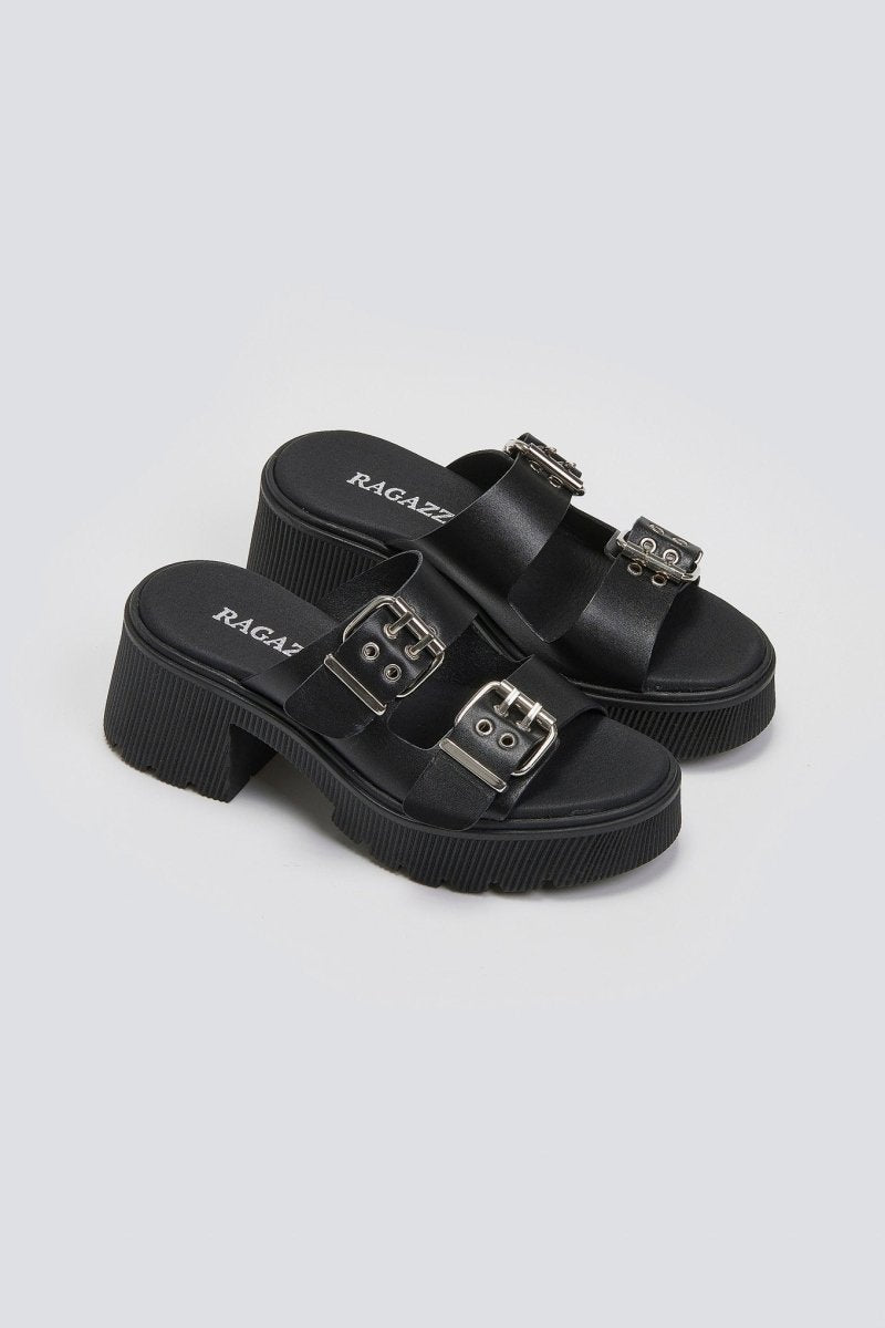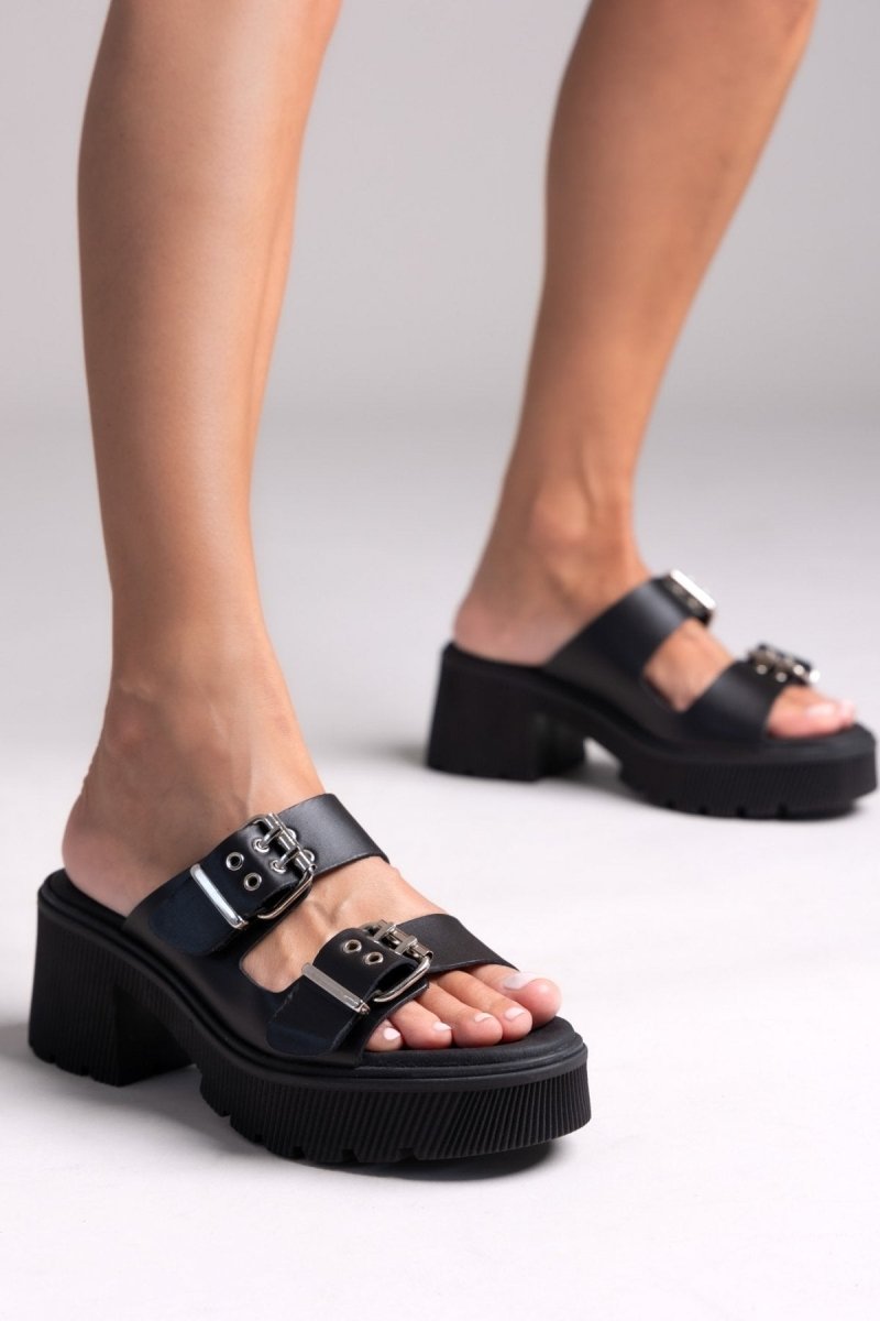 Mules δερμάτινα με τοκάδες Ragazza 01245 - Μαύρο