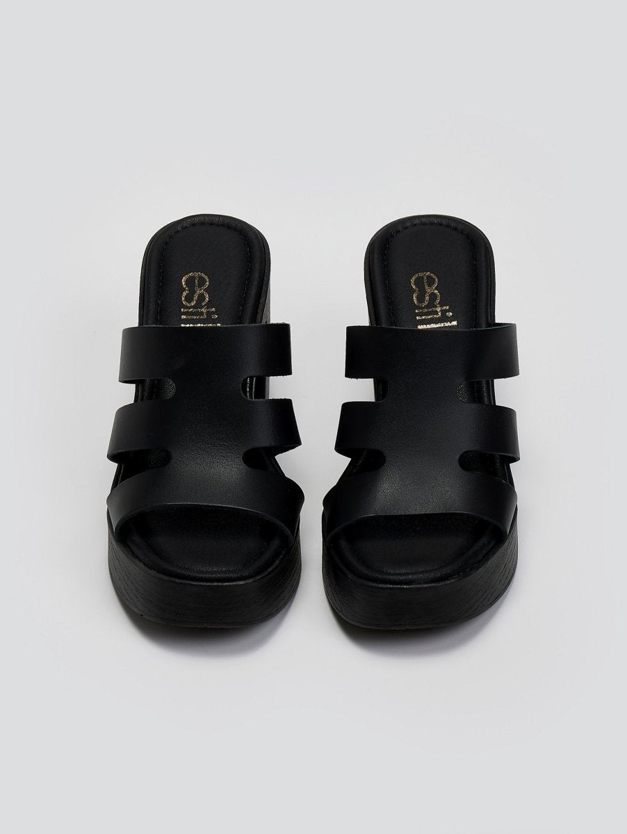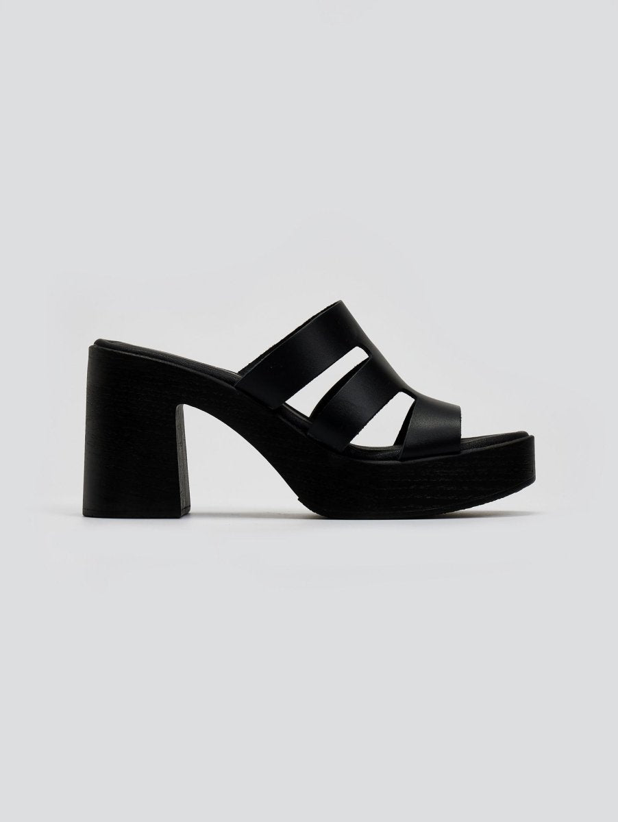 Mules δερμάτινα με ανοίγματα Estil - Μαύρο