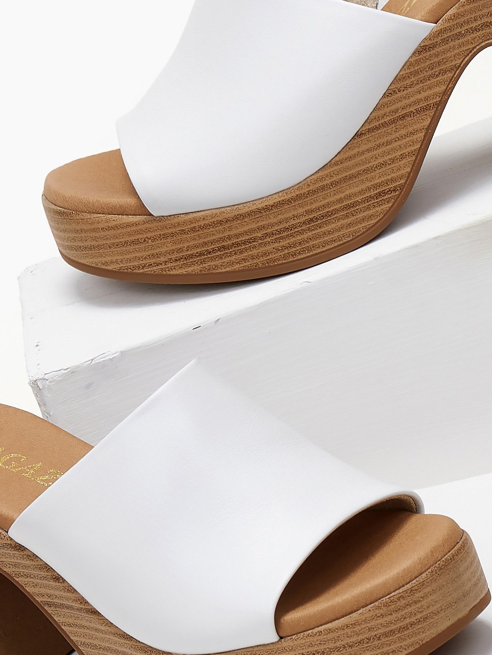 Mules δερμάτινα με φαρδιά φάσα Ragazza 0788 - Λευκό
