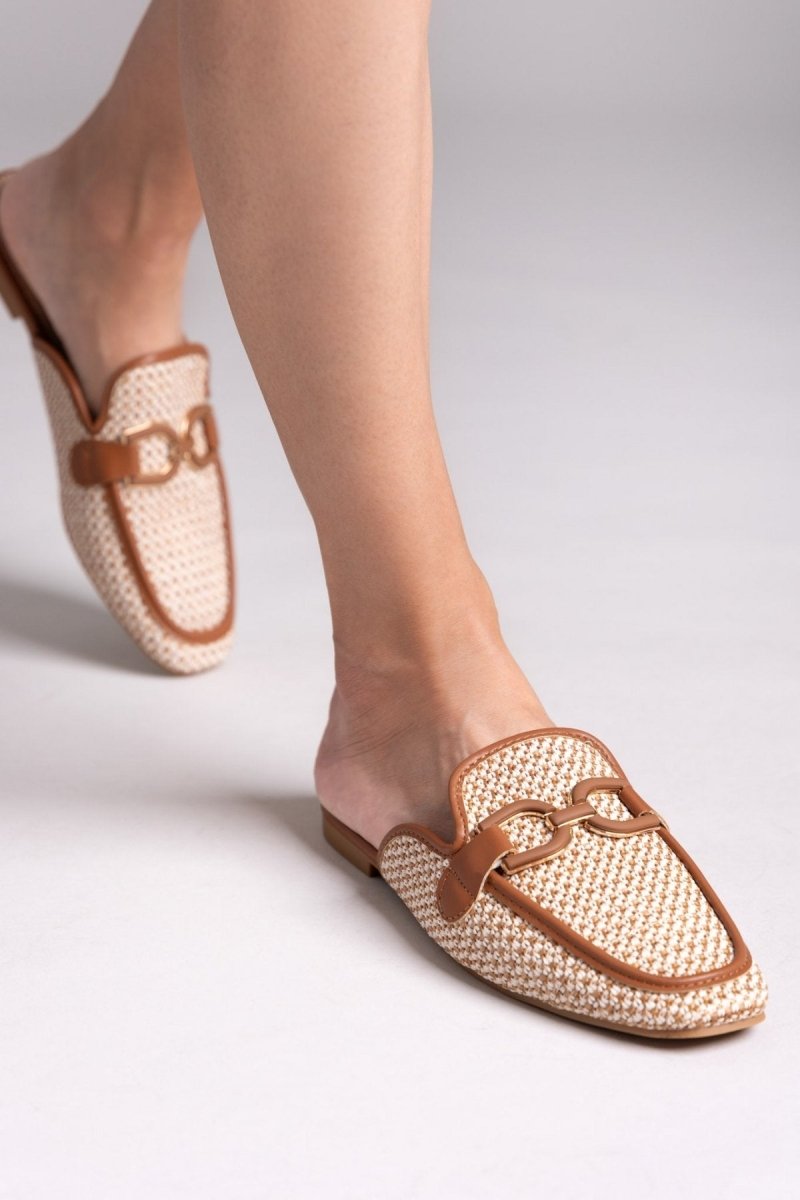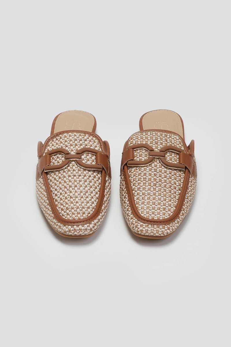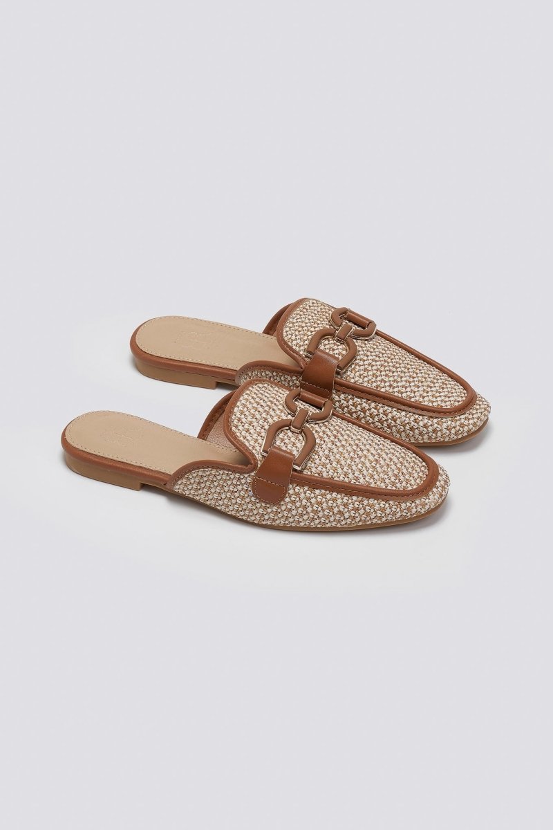 Mules με πλεκτό σχέδιο από ψάθα ERYNN. Μεταλλικό ματ διακοσμητικό στο επάνω μέρος. Μαλακή σόλα με λάστιχο.