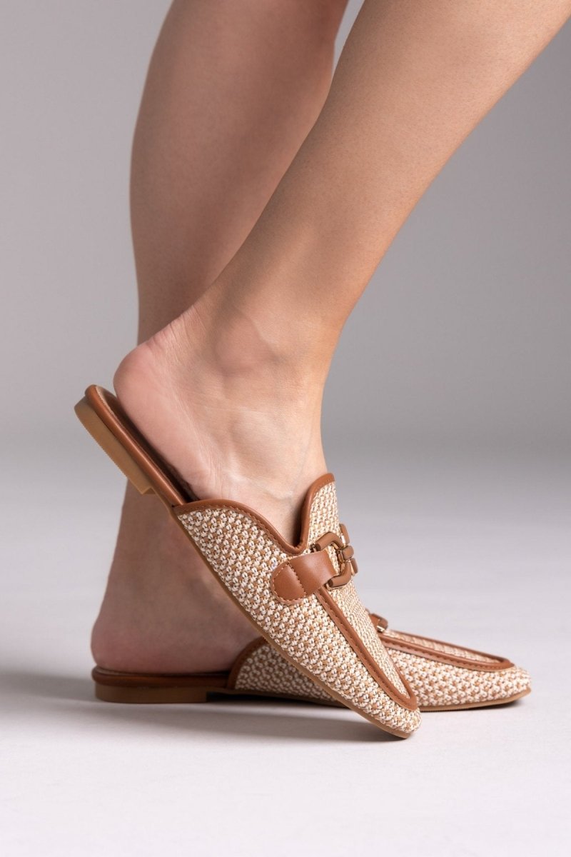 Mules με πλεκτό σχέδιο ERYNN - Κάμελ