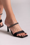 Mules σατέν με στρας λουράκι TFP - Μαύρο