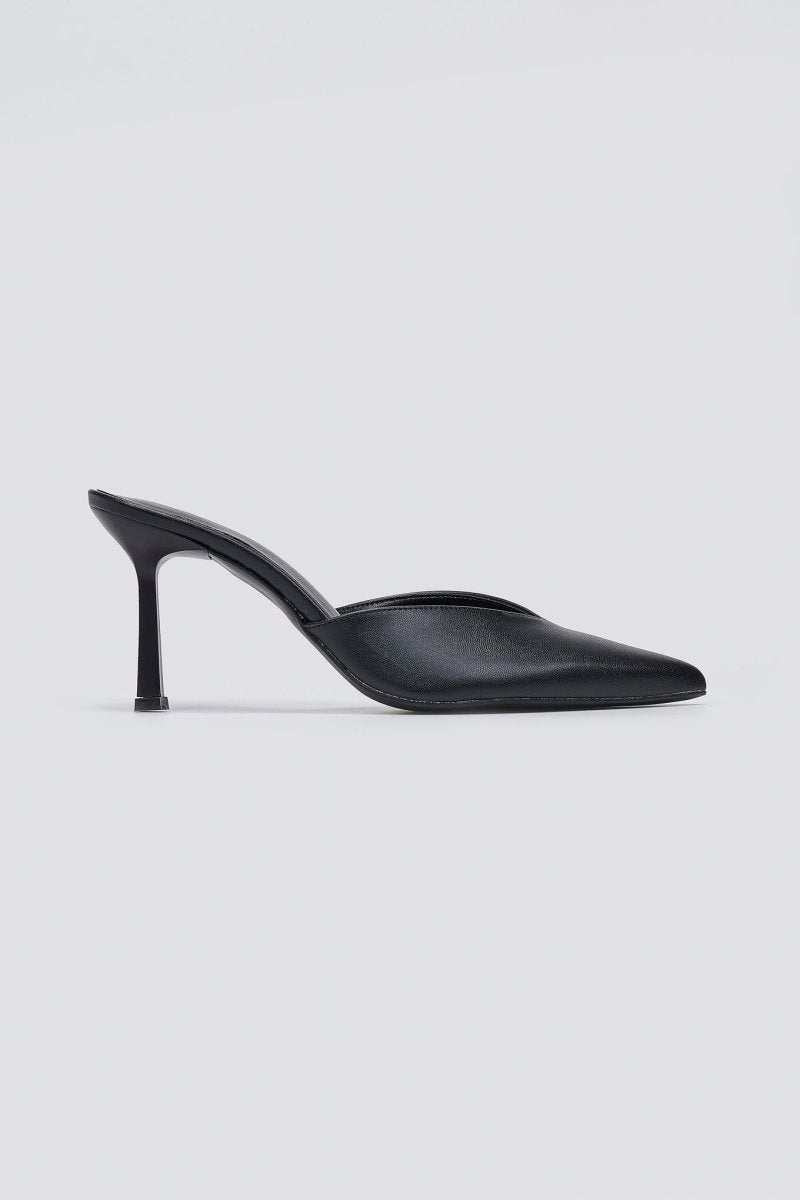 Μυτερά mules με ψηλό λεπτό τακούνι στιλέτο και κολακευτικό V-cut ντεκολτέ. Κομψές γραμμές, ελαφριά αντικραδασμική προστασία και εκλεπτυσμένη ανύψωση για κάθε στιγμή της ημέρας.