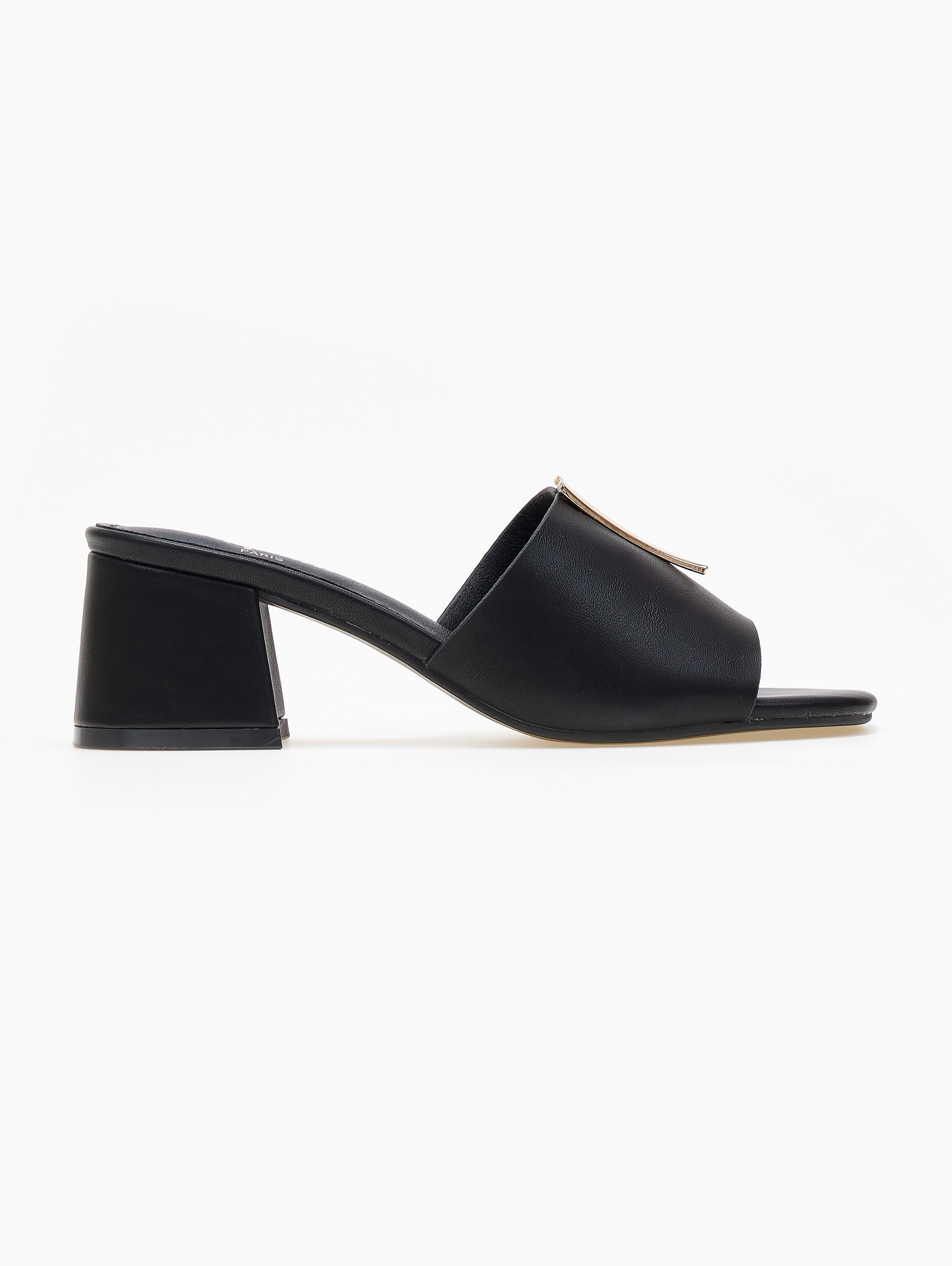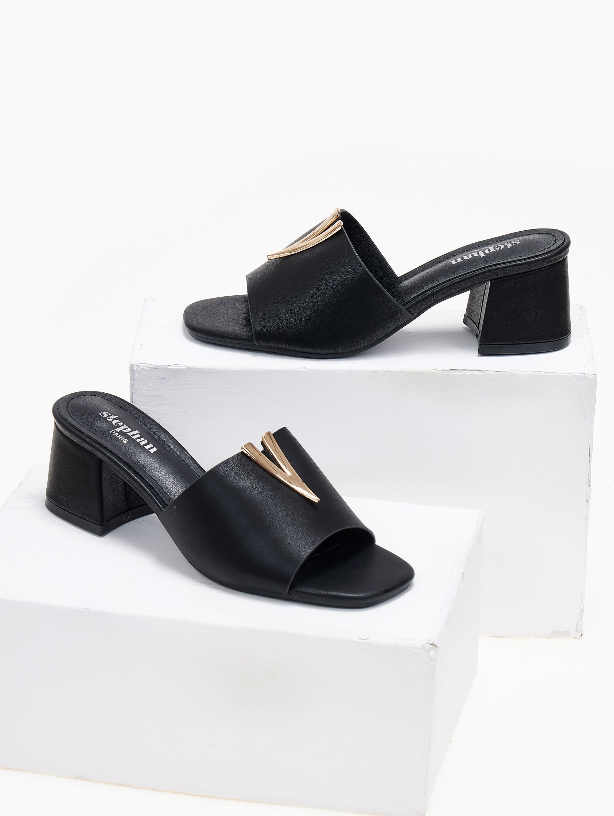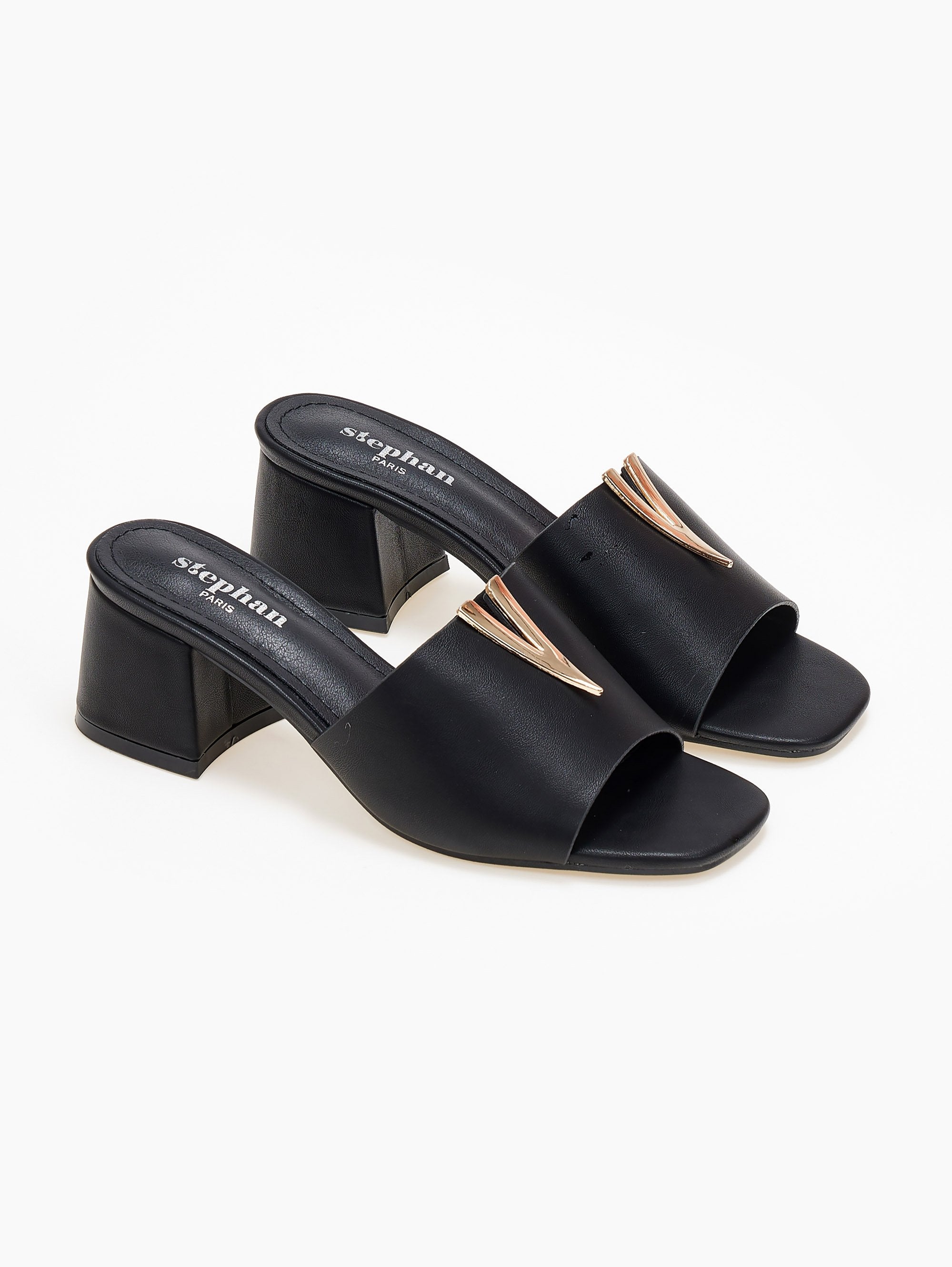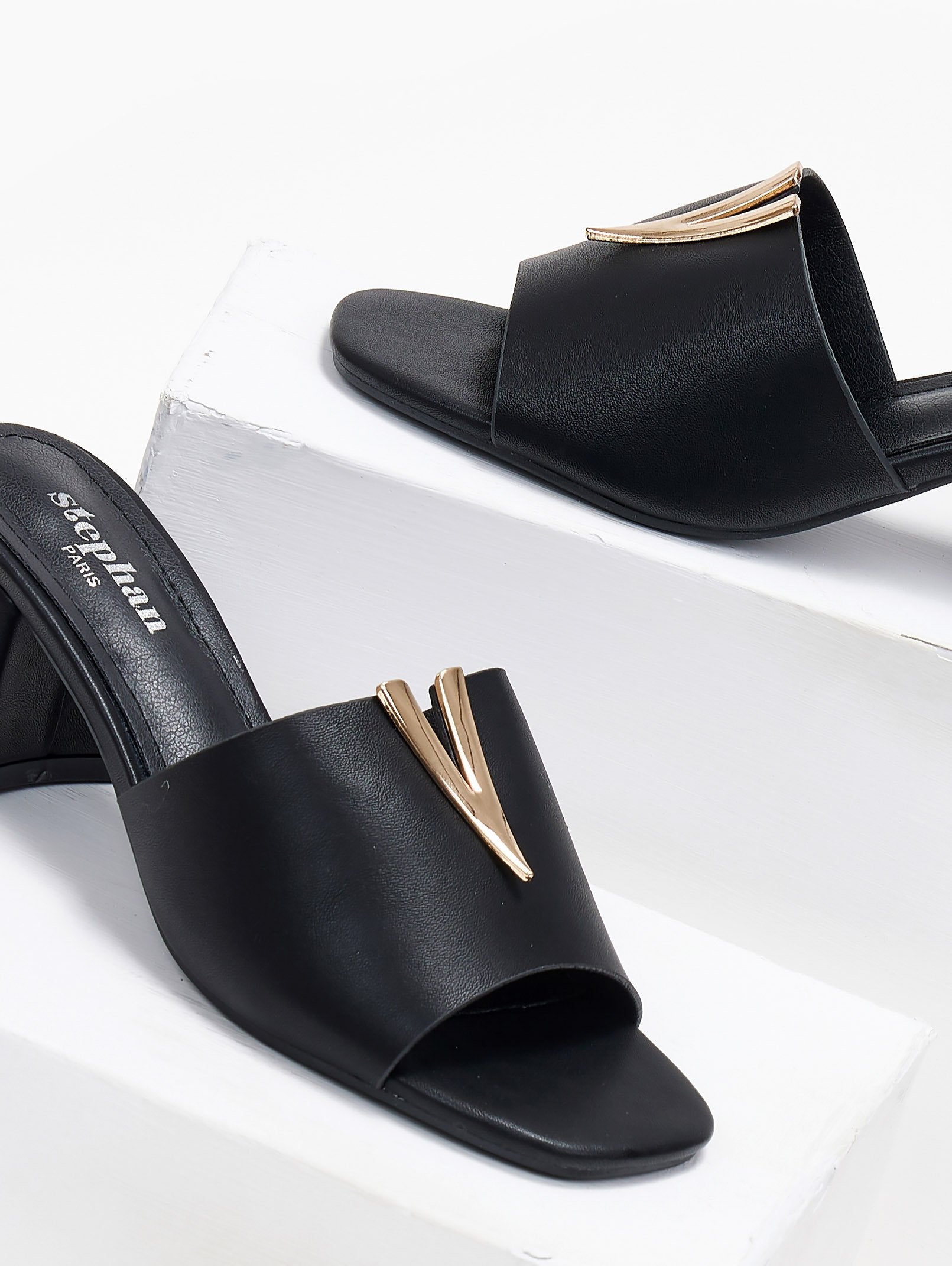 Mules με v cut μεταλλικό στοιχείο - Μαύρο