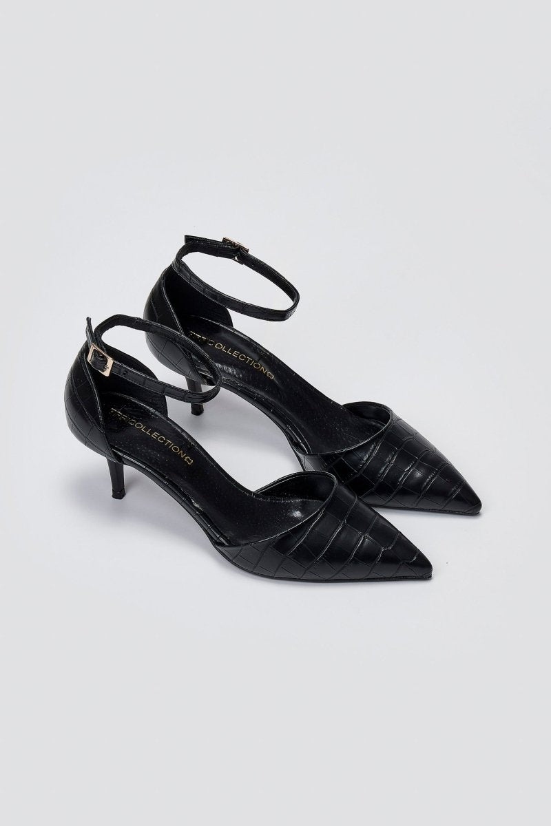Μυτερές γόβες με cutout από την TFP με κλείσιμο στον αστράγαλο. Μαλακός πάτος, σταθερή εφαρμογή, κομψή γραμμή—κομψά τακούνια για το γραφείο, εκδηλώσεις και βραδινές εμφανίσεις.