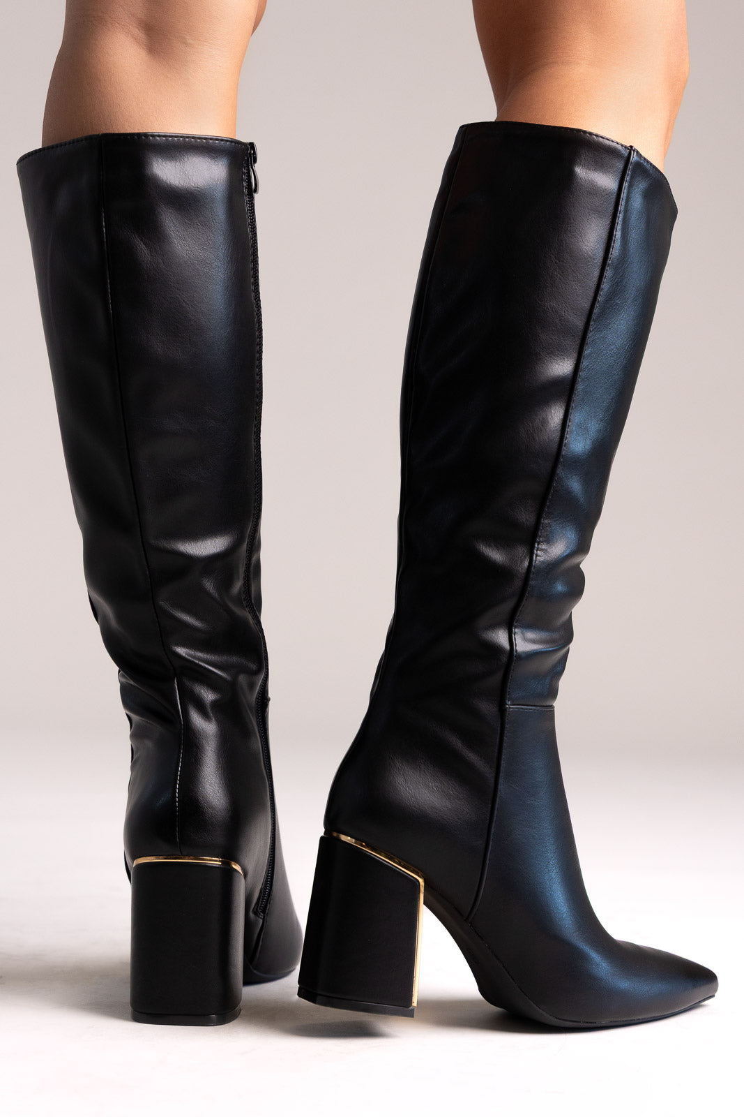 Μυτερά Μποτάκια με Μεταλλική Λεπτομέρεια και Τακούνι Block - Μαύρα Ματ
