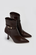 Μυτερά Μποτάκια Μποτάκια με Τακούνι Στιλέτο - Σκούρο Καφέ Ματ