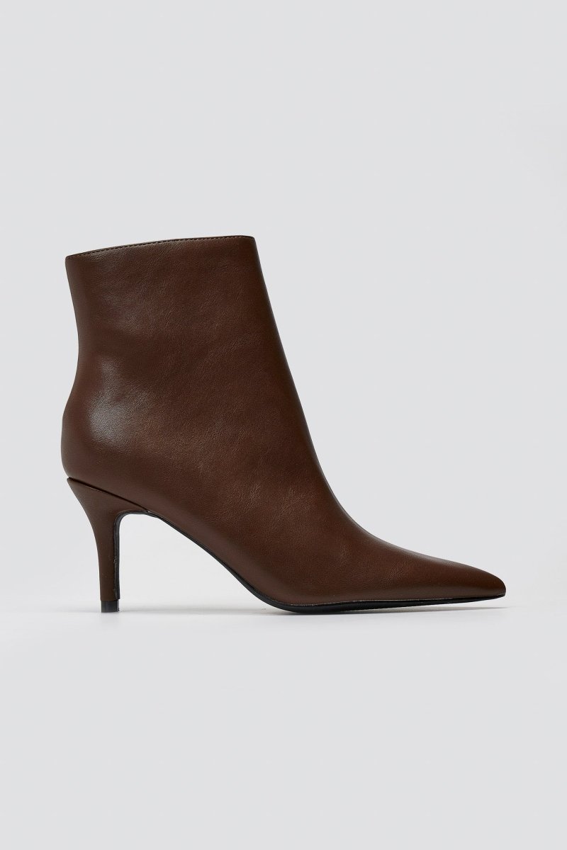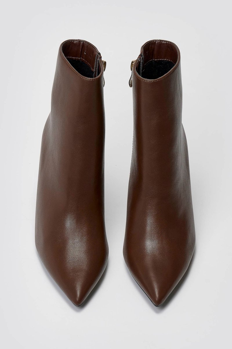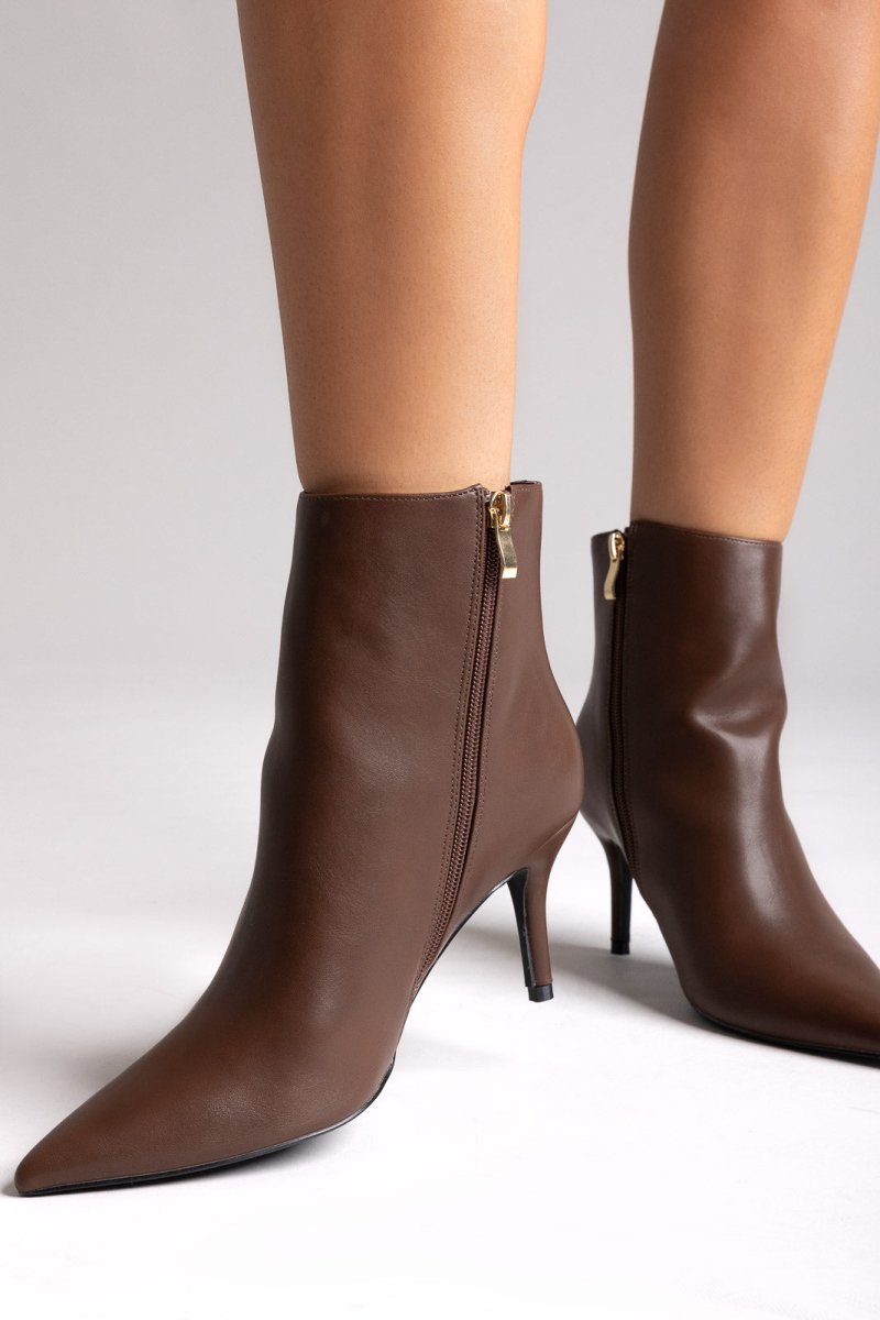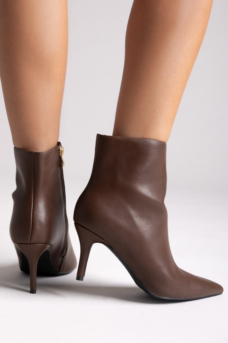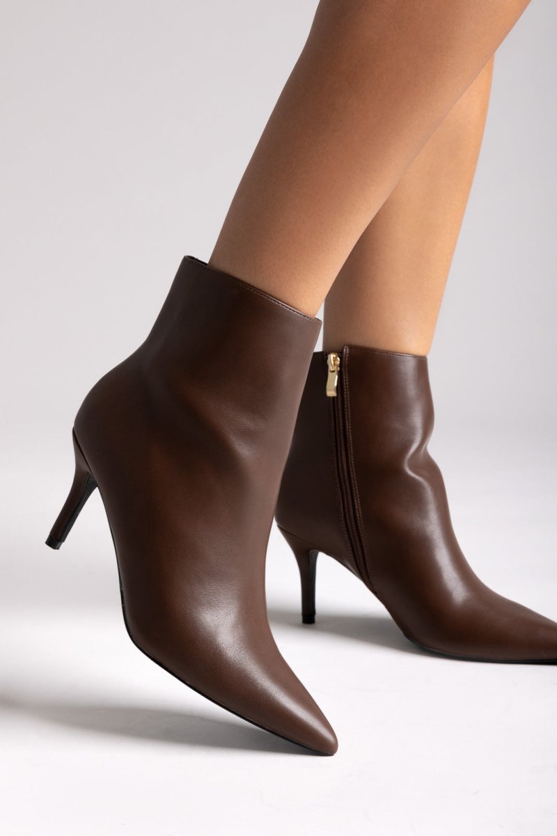 Μυτερά μποτάκια αστραγάλου με τακούνι στιλέτο - Σκούρο καφέ ματ