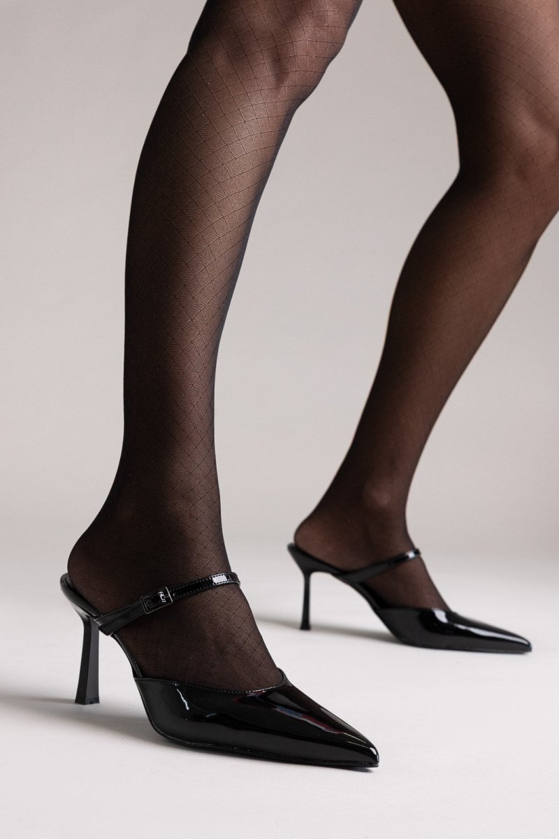 Μυτερά Mules με λουράκι TFP - Μαύρο Λουστρίνι