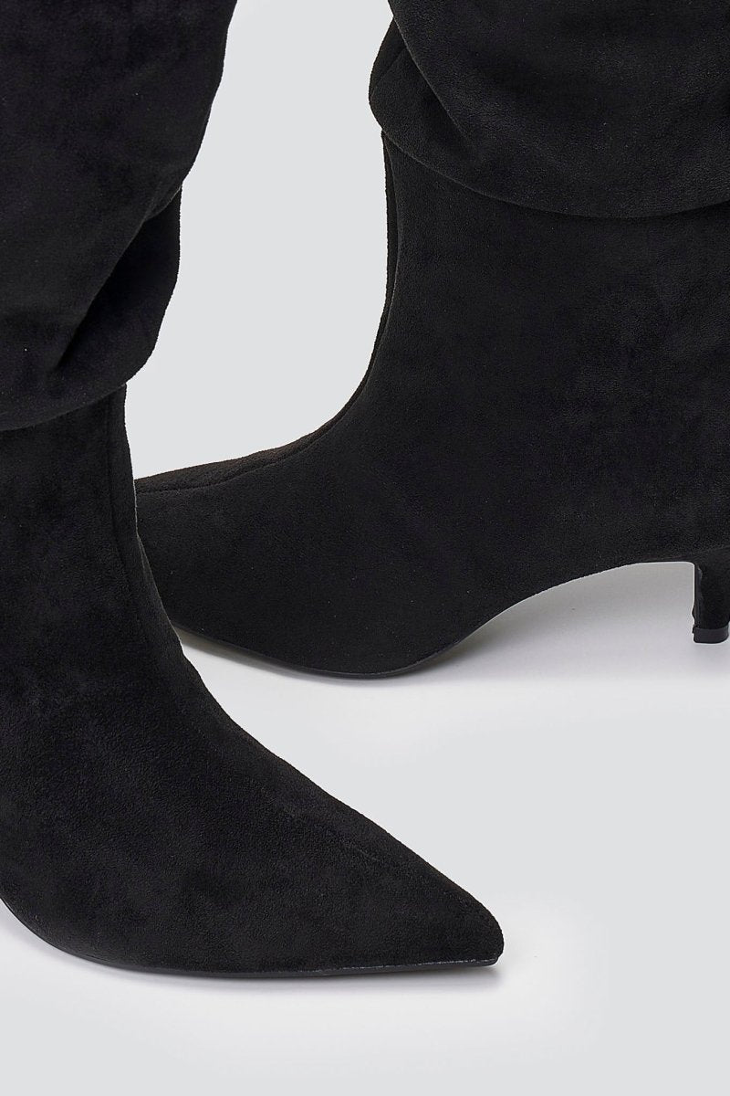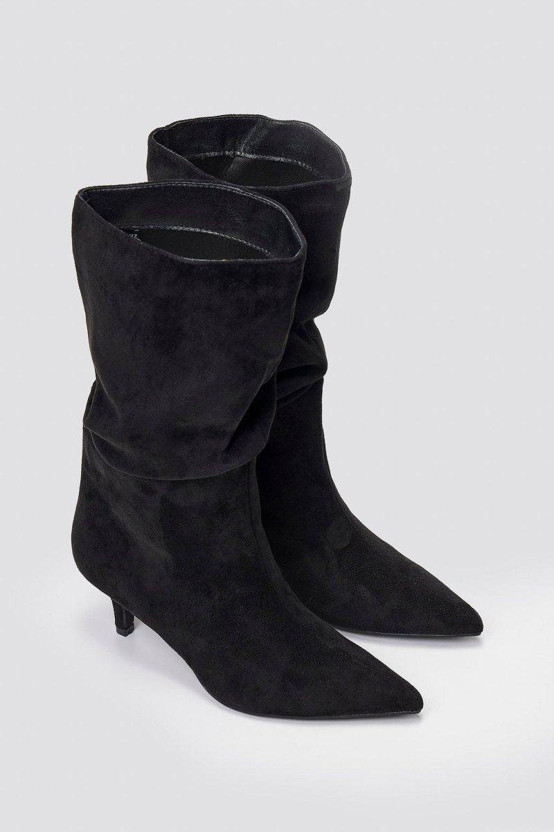 Μυτερές slouch μπότες με τακούνι kitten - μαύρο σουέτ