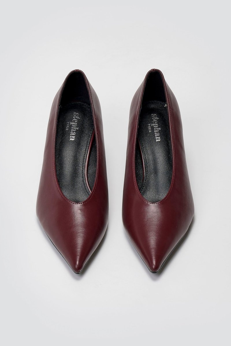 Μυτερές γόβες με kitten τακούνι - Μπορντό Ματ