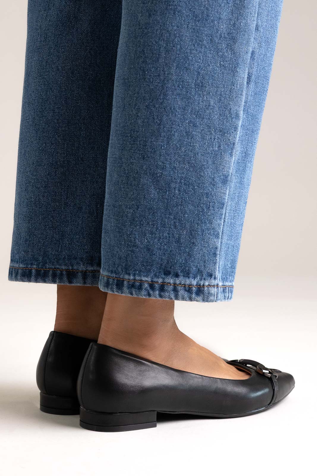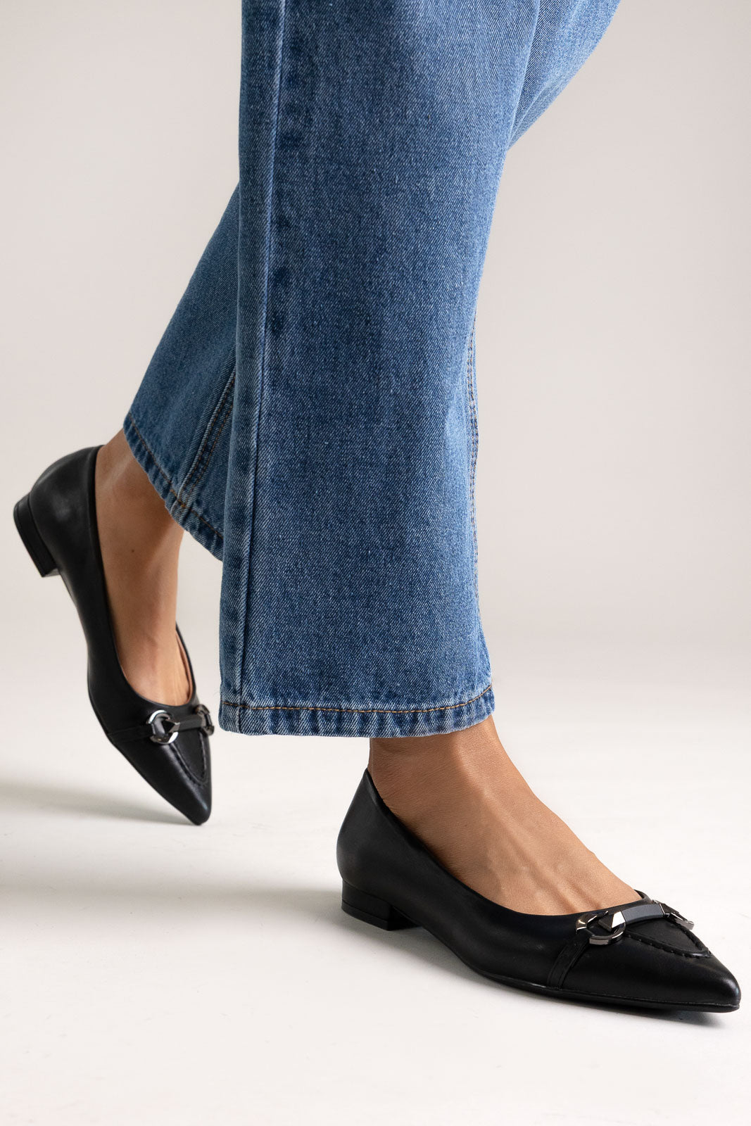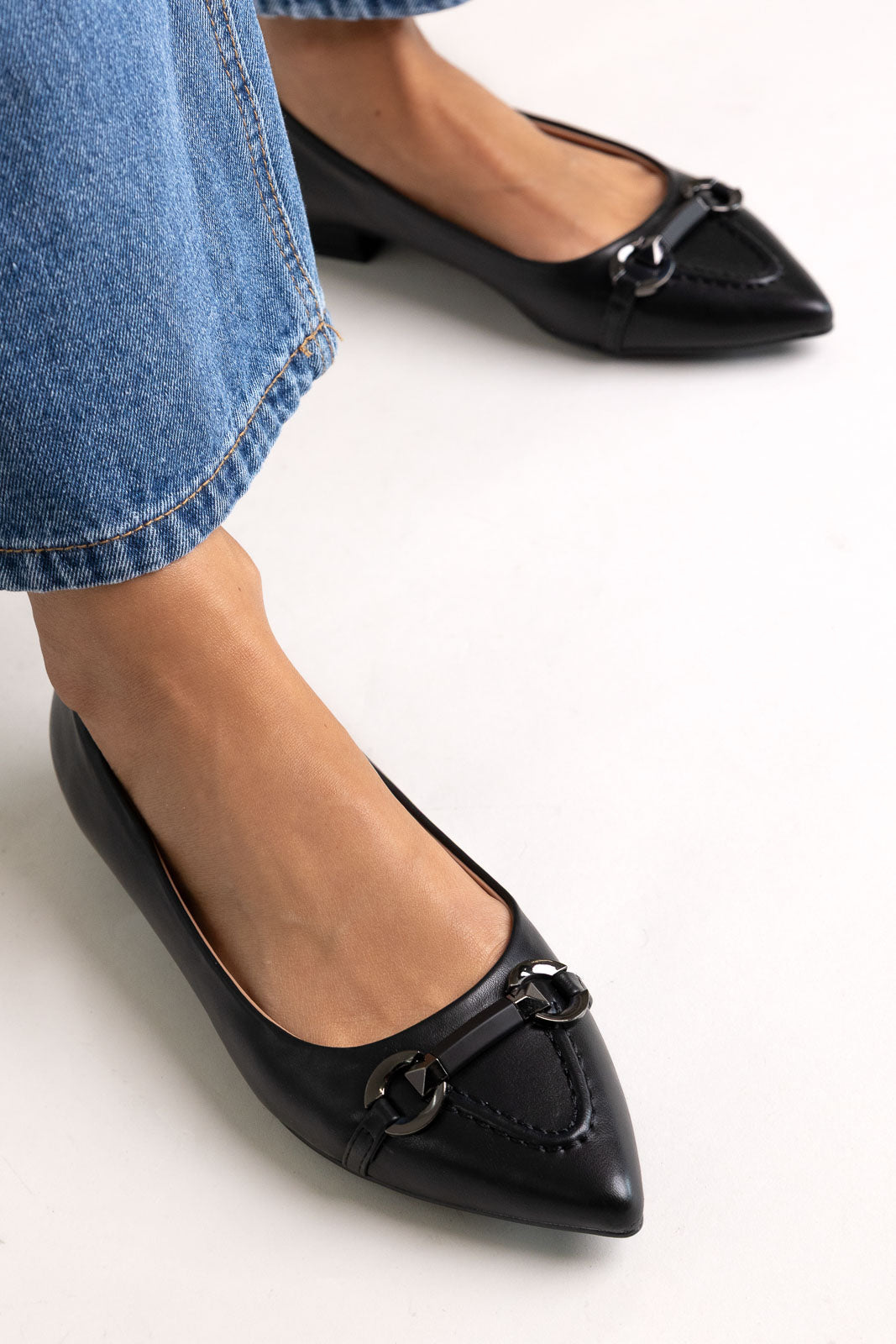 Μυτερές Μπαλαρίνες με Μεταλλική Λεπτομέρεια - Μαύρο Ματ