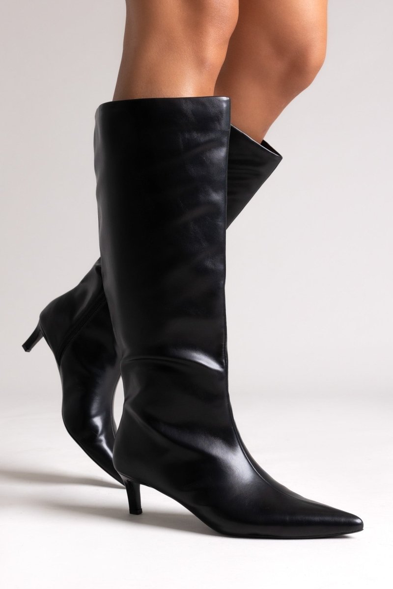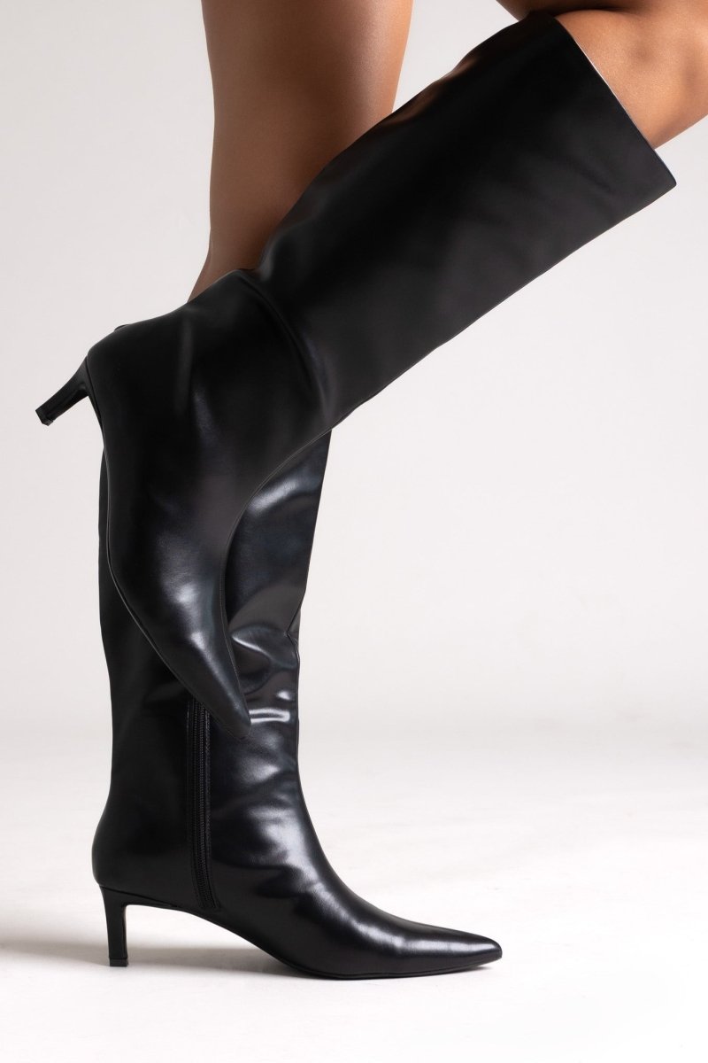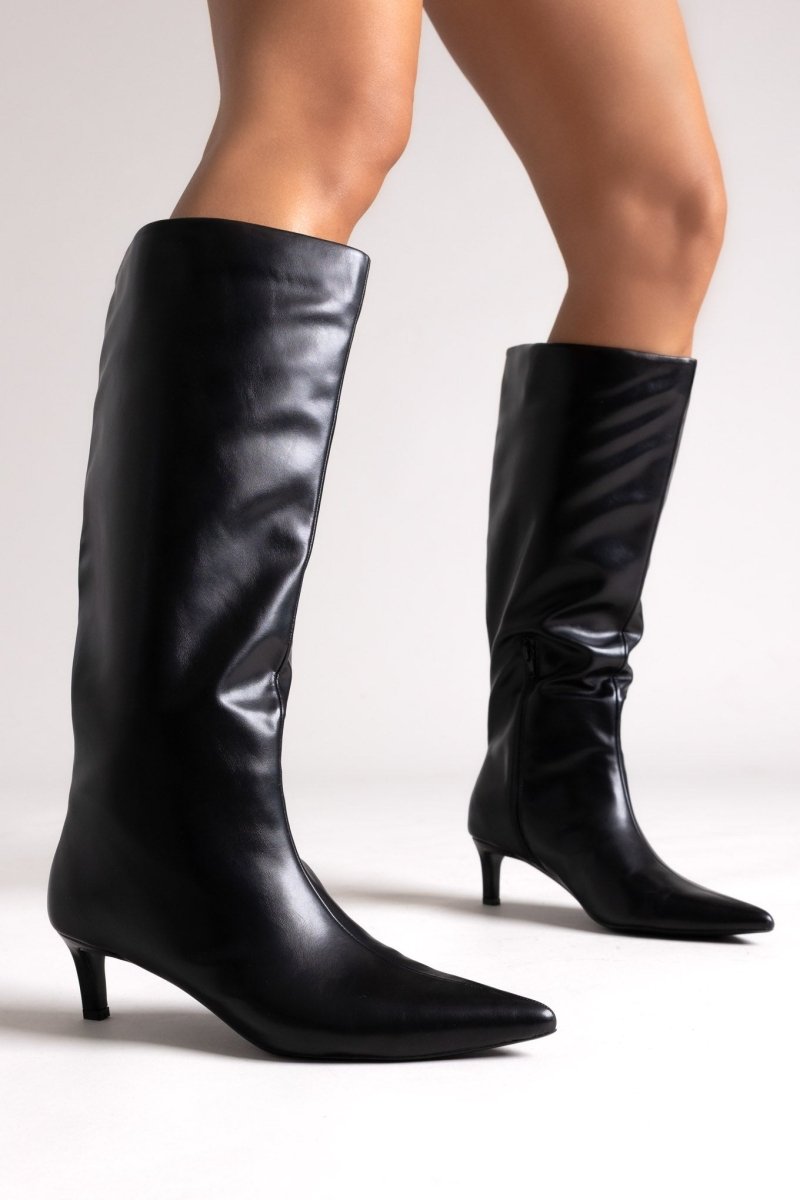 Κομψές μπότες από την ONLY με μυτερή μύτη και χαμηλό τακούνι kitten. Σχέδιο ψηλής γάμπας με εσωτερικό φερμουάρ για κομψές καθημερινές εμφανίσεις.