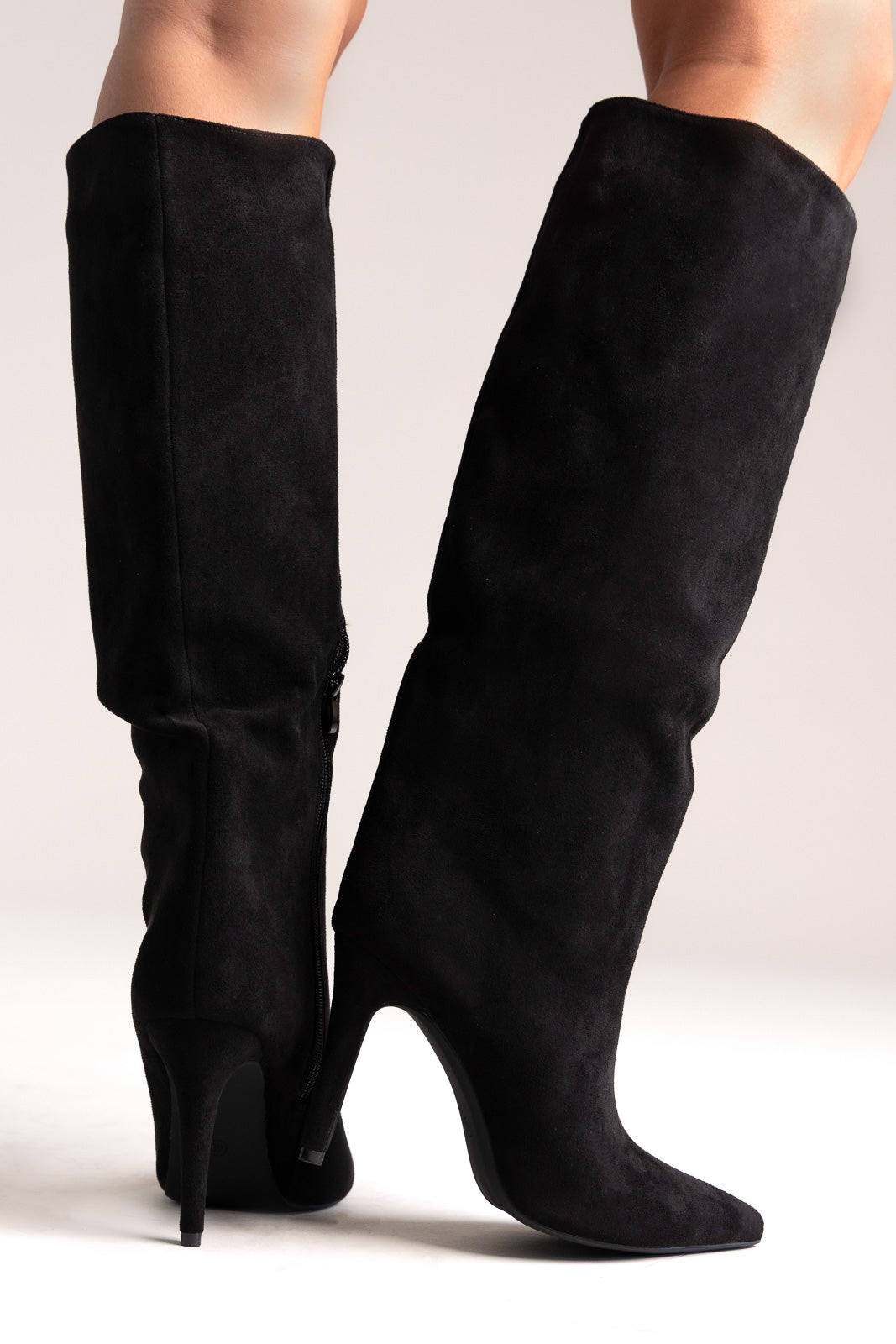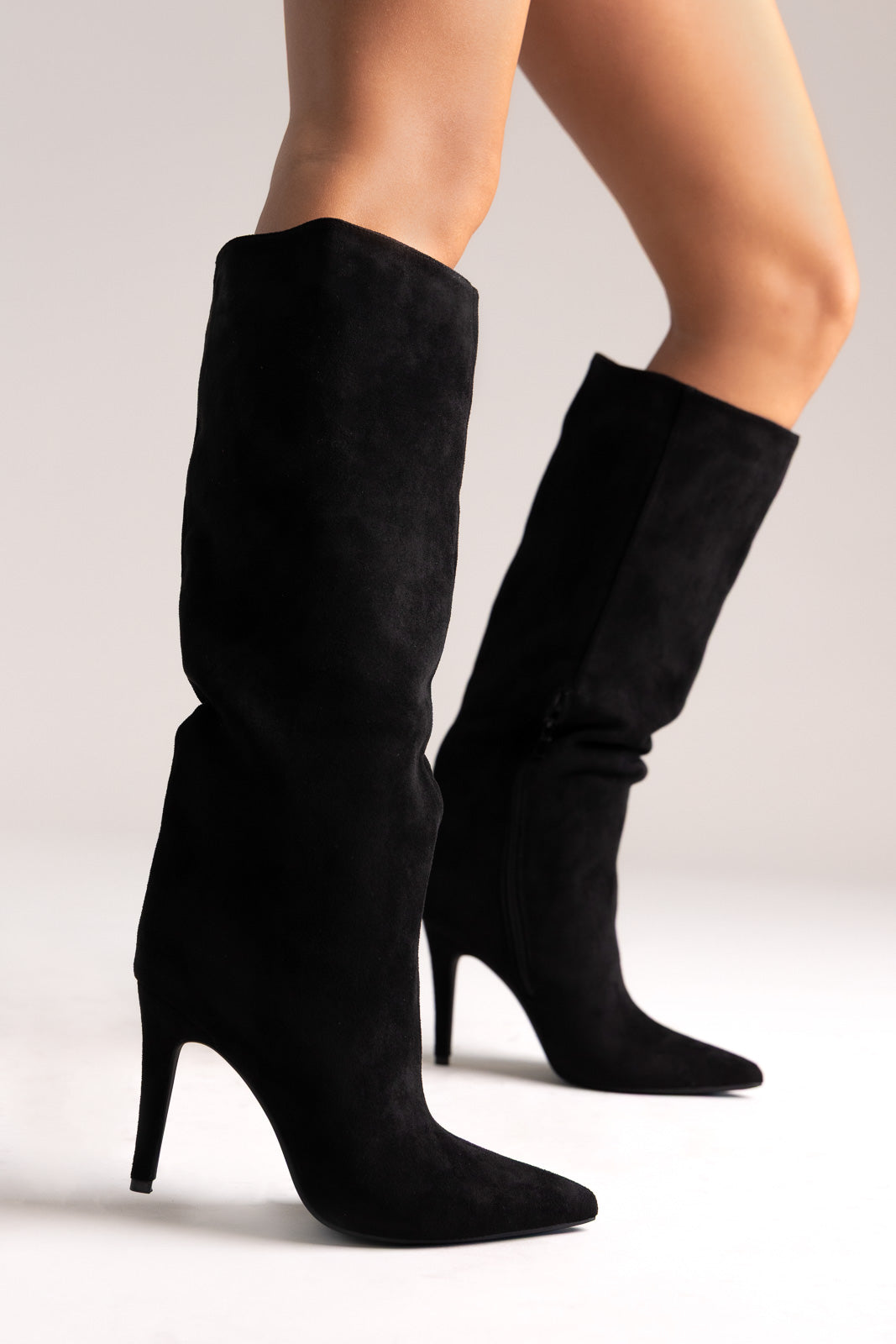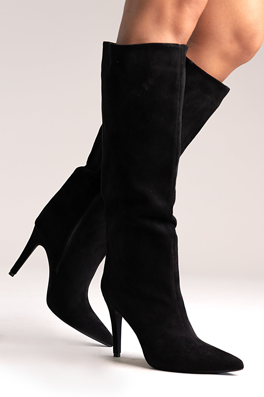 Μυτερά μποτάκια από Suede με ψηλό τακούνι στιλέτο και πλαϊνό φερμουάρ. Ένας κομψός σχεδιασμός που συνδυάζει την κομψότητα με το μοντέρνο στυλ.