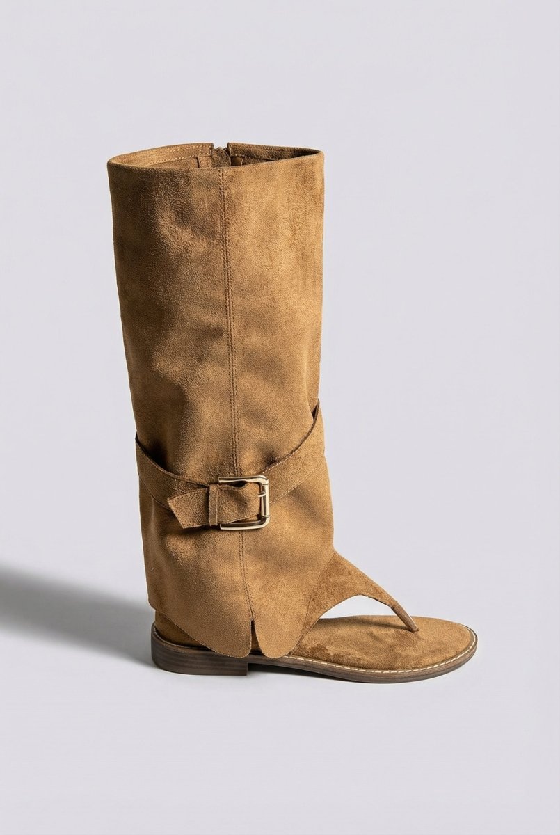 Μπότες με ανοιχτή μύτη μέχρι τη μέση της γάμπας - Ταμπά Σουέντ